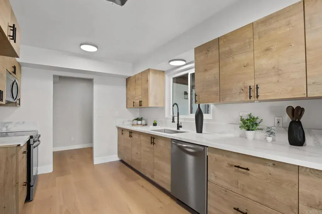 Fantastic curb appeal home, with new roof, new custom plastering stucco work, new windows, new kitchen, new flooring, new appliances, 2 new central air conditioner units, new carpet upstairs, you will have 2 bedrooms downstairs with a large bathroom, and 2 large bedrooms upstairs with also a large bathroom, nice views, large backyard that you can access for extra parking and RV’s, New turf landscaping, This dream home is perfect for family gatherings and extended family! New engineered high end hardwood flooring lengths up to 7.25 feet by 10.25 inches wide, 4MM top layer by En Bois Flooring Brittany Collection. Remodeled baths, Remodeled Kitchen with new upgraded cabinets and countertops. You will just fall in love with the backyard privacy this home has to offer, perfect for spending quality time for you and your family!!! Adorable home in a established neighborhood.