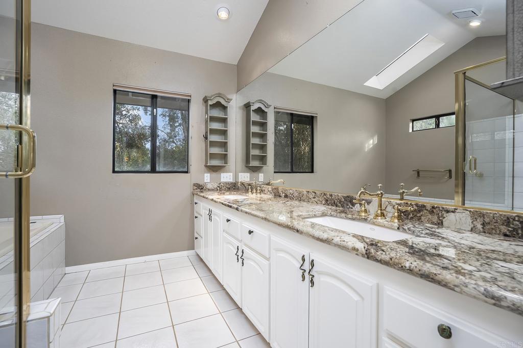 EXCEPTIONAL ESTATE OPPORTUNITY IN RANCHO BERNARDO’S MOST EXCLUSIVE ENCLAVE, THE TRAILS. POSITIONED ON A PREMIER 1.16-ACRE PRIVATE CORNER LOT, THIS EXPANSIVE RESIDENCE OFFERS REMARKABLE PRIVACY, PANORAMIC VIEWS, AND THE FOUNDATION FOR TRUE RESORT-STYLE LIVING. SPANNING 5,467 SQUARE FEET, THE HOME FEATURES 6 BEDROOMS AND 3.5 BATHROOMS WITH A LAYOUT DESIGNED FOR GRAND-SCALE ENTERTAINING AND EVERYDAY ELEGANCE. SOARING 20FT WOOD BEAM CEILINGS, MULTIPLE FORMAL AND CASUAL LIVING SPACES, AND WALLS OF WINDOWS CREATE AN ABUNDANCE OF NATURAL LIGHT WHILE FRAMING THE STUNNING SURROUNDINGS AND SEAMLESS INDOOR-OUTDOOR FLOW. FOUR FIREPLACES THROUGHOUT THE HOME ADD WARMTH, CHARACTER, AND ARCHITECTURAL INTEREST. THE ENTERTAINER’S KITCHEN ANCHORS THE HOME WITH GRANITE COUNTERTOPS, A CENTER ISLAND, WALK-IN PANTRY, AND GENEROUS COUNTERTOP SEATING, OPENING TO THE FAMILY ROOM AND AN EXPANSIVE APPROXIMATELY 1,000 SQUARE FEET OF TREX DECKING IDEAL FOR HOSTING OR UNWINDING WHILE TAKING IN THE BREATHTAKING VIEWS. A WET BAR IN THE FAMILY ROOM FURTHER ENHANCES THE HOME’S ENTERTAINMENT APPEAL. THE SPACIOUS PRIMARY SUITE IS A PRIVATE SANCTUARY, OFFERING TWO PRIVATE TERRACES, A SEPARATE DRESSING AREA, AND AN OVERSIZED CEDAR-LINED WALK-IN CLOSET, CREATING A TRUE RETREAT WITHIN THE HOME. THE LOWER LEVEL PROVIDES ADDITIONAL FLEXIBLE LIVING SPACE WITH A BONUS ROOM WITH THE OPTION TO BE AN ADDITIONAL BEDROOM, ALONG WITH A BEDROOM FEATURING A WALK-IN CLOSET AND A FULL BATHROOM. THIS LEVEL OFFERS BOTH INTERIOR AND EXTERIOR ACCESS, MAKING IT IDEAL FOR GUESTS, MULTI-GENERATIONAL LIVING, OR FUTURE CUSTOMIZATION. THE FULLY FENCED BACKYARD IS A TRUE HIGHLIGHT, FEATURING A PARK-LIKE YARD WITH LUSH LANDSCAPING, MAJESTIC MATURE TREES, A SPECTACULAR DIVING POOL, LUXURIOUS SPA, AND A LARGE FIREPIT—CREATING AN EXCEPTIONAL SETTING FOR BOTH RELAXATION AND ELEVATED ENTERTAINING. THE PROPERTY OFFERS POTENTIAL FOR ONE, POSSIBLY TWO ADUS, IN ADDITION TO THE EXISTING DOWNSTAIRS LOWER-LEVEL LIVING AREA, PROVIDING LONG-TERM FLEXIBILITY AND VALUE. ADDITIONAL FEATURES INCLUDE A 3-CAR ATTACHED GARAGE WITH DIRECT ACCESS, AN ELEGANT CIRCULAR DRIVEWAY OFFERING ABUNDANT ADDITIONAL PARKING, INDOOR LAUNDRY, AND A COMPREHENSIVE SECURITY SYSTEM FOR PEACE OF MIND. THIS IS A RARE OPPORTUNITY TO CREATE A CUSTOM ESTATE IN ONE OF RANCHO BERNARDO’S MOST COVETED NEIGHBORHOODS—WHERE SCALE, PRIVACY, VIEWS, AND TIMELESS POTENTIAL CONVERGE.