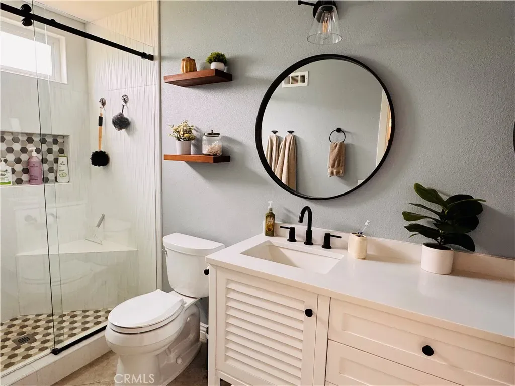 Step inside to find a completely remodeled living room with updated flooring, fresh paint, and abundant natural light — the perfect setting for cozy nights or entertaining guests. The upgraded kitchen is a true showpiece, featuring modern cabinetry, sleek quartz countertops, stainless steel appliances, and an open-concept design that flows into the dining area. The renovated bathroom boasts high-end finishes and a fresh, spa-inspired feel. This home offers 3 bedrooms and 2 bathrooms, including a relaxing primary suite that opens to a private patio retreat complete with a built-in fire pit, your perfect spot for winding down under the stars. Enjoy outdoor living year-round with a brand-new patio cover, providing shade and comfort for barbecues, gatherings, or quiet mornings with coffee. The property also includes a newer roof, giving you peace of mind and added value.