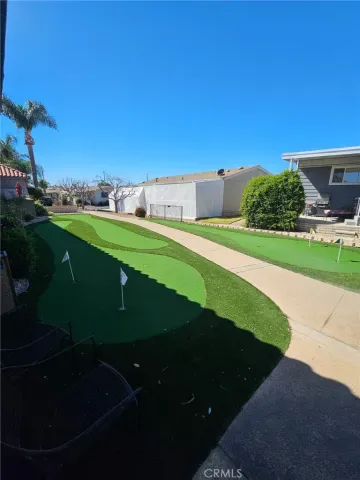 Community amenities include a heated swimming pool, spa, fitness center, miniature golf course, clubhouse, game room, billiards, craft clubs, exercise classes, and planned social activities. Additional features include scenic walking areas, BBQ spaces, RV storage, and pet-friendly outdoor areas.