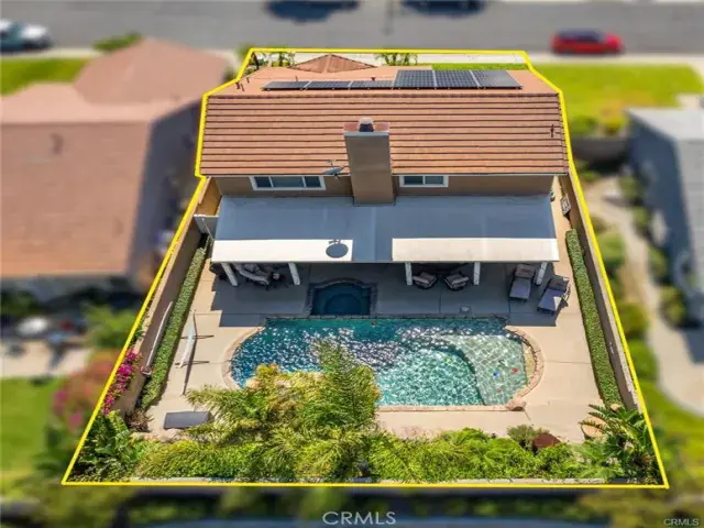 The backyard delivers an exceptional outdoor experience with a sparkling in-ground pool, a relaxing spa, and an elevated sense of tranquility reminiscent of a private retreat. A covered deck creates a comfortable shaded area ideal for lounging, grilling, or gathering with friends while enjoying views of the water features and resort-inspired landscaping. The paid-off solar system significantly reduces monthly utility costs, making this home not only beautiful but also energy-efficient and budget-friendly.