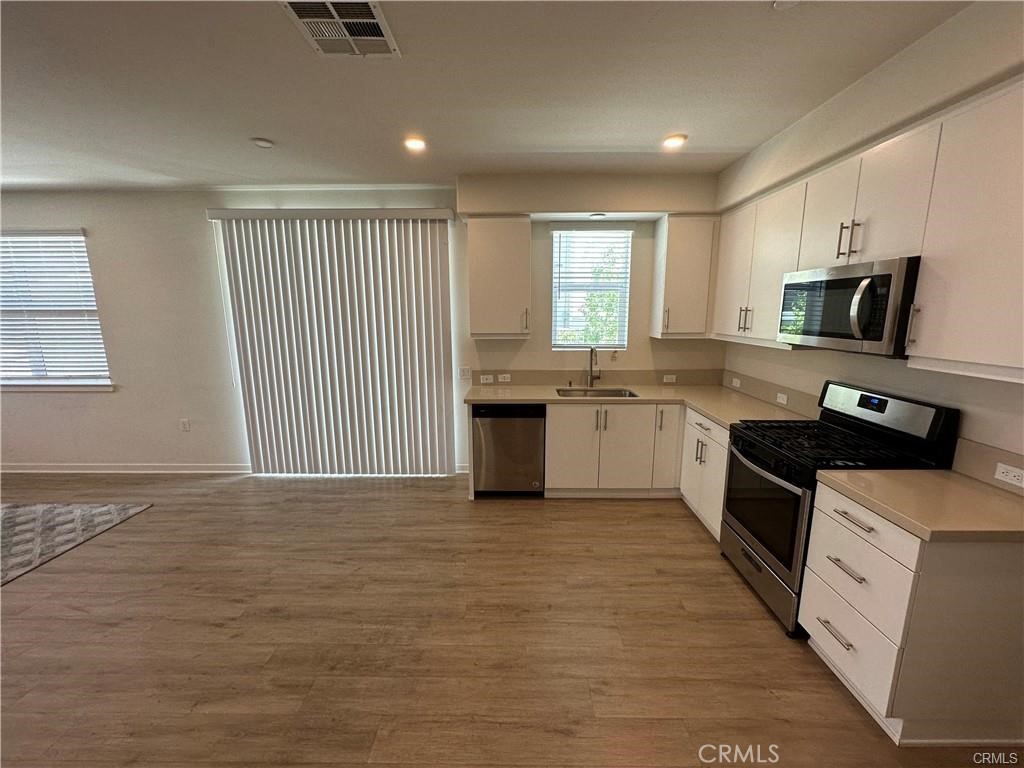 Contemporary and stylish two-story condo nestled in the highly desirable community The Resort! Prime location – just moments from Ontario Mills, dining, entertainment and easy access to freeway 10 & 15. 3-bedroom, 2.5 bathroom with lots of upgrades featuring stainless steel appliances, granite countertops, and ample cabinet space and a open concept living space that seamlessly connects the living, dining, and kitchen areas. Large windows flood the interior with natural light, creating a bright and welcoming atmosphere. Enjoy outdoor living on your private patio, perfect for alfresco dining, relaxation, or container gardening. It’s an inviting space to unwind after a long day. Upstairs, you’ll find a generous master suite offering privacy, comfort, and convenience. The suite features walk-in closet and en-suite bathroom with modern fixtures and finishes. Additional 2 bedrooms sharing a full bath. Also, there is a dedicated laundry area on the upper level with space for a full-size washer and dryer. This home is part of a well-maintained community with lush landscaping, manicured grounds, and common areas for residents to enjoy. Community amenities include a pool/spa, clubhouse, parks, outside eating and BBQ area.