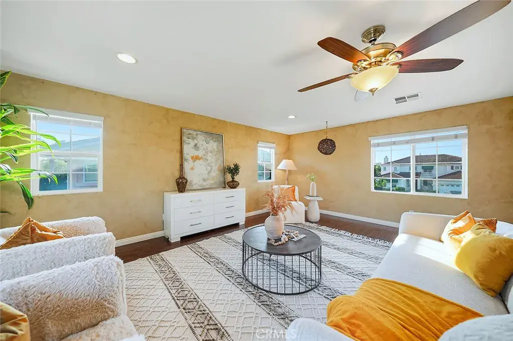 Welcome to this stunningly upgraded residence in one of Rancho Cucamonga’s most sought-after neighborhoods, known for its top-rated schools, beautiful surroundings, and vibrant community. With a captivating blend of brick and stucco exteriors, a graceful balcony, and an extended driveway, this home exudes timeless curb appeal and modern sophistication. Step inside to discover a bright and inviting interior, where a tiled entry flows into the heart of the home—an open-concept kitchen and family room designed for comfort and connection. Rich dark laminate floors add warmth and character throughout the main level. A versatile bonus room offers flexibility as a home office, guest suite, or creative studio, while the formal dining room provides the perfect setting for memorable gatherings. The chef’s kitchen impresses with a large center island, gleaming granite countertops, natural wood cabinetry, double ovens, a 5-burner cooktop, and abundant workspace, seamlessly connecting to the cozy family room complete with a welcoming fireplace. Upstairs, an expansive loft offers endless possibilities for entertainment, study, or relaxation. Three spacious bedrooms include one with private balcony access, and the luxurious primary suite is a true retreat—bathed in natural light and featuring a spa-inspired bathroom with dual vanities, soaking tub, separate walk-in shower, and an oversized walk-in closet. The backyard has been beautifully reimagined with a redesigned slope and an extended flat area—perfect for outdoor dining, play, or quiet evenings under the stars. Surrounding the space is a lush collection of mature fruit trees, including persimmon, orange, apple, pomegranate, plum, apricot, loquat, Asian pear, peach, lemon, lime, mandarin, longan, grapes, and goji berry—creating your own private orchard sanctuary. With thoughtful upgrades, elegant living spaces, and a prime location near parks, shopping, and award-winning schools, this home perfectly blends beauty, comfort, and convenience. Welcome to the lifestyle you’ve been dreaming of.