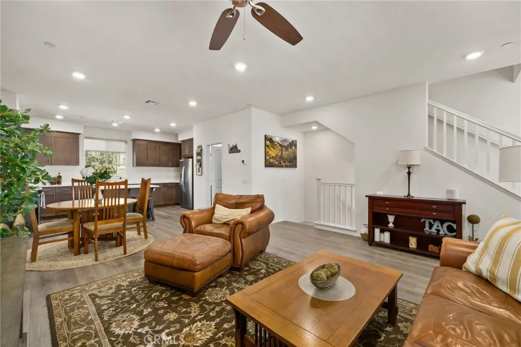 a bright, open-concept layout featuring upgraded flooring, recessed lighting, and a spacious living area