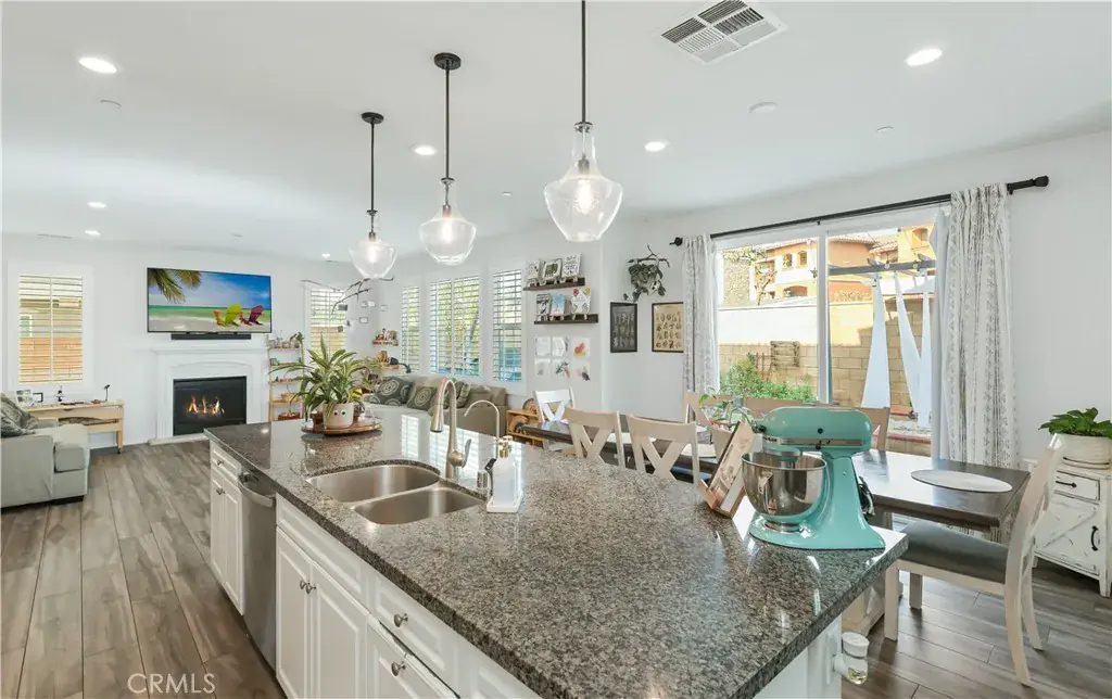 Step inside to an inviting open-concept layout that seamlessly connects the family room with a cozy fireplace, dining area, and gourmet kitchen—creating a spacious, functional living space perfect for gatherings. The chef’s kitchen features a large granite island, walk-in pantry, and extensive counter space ideal for cooking, hosting and family meals.