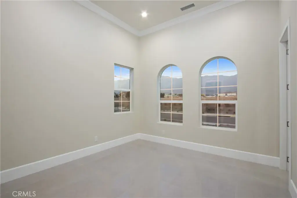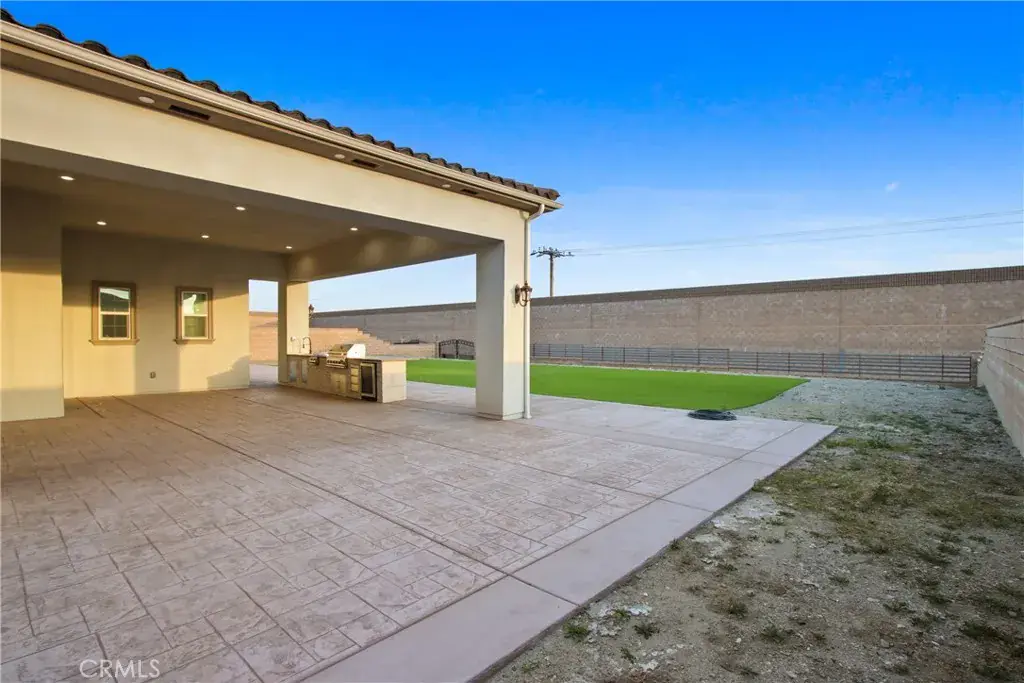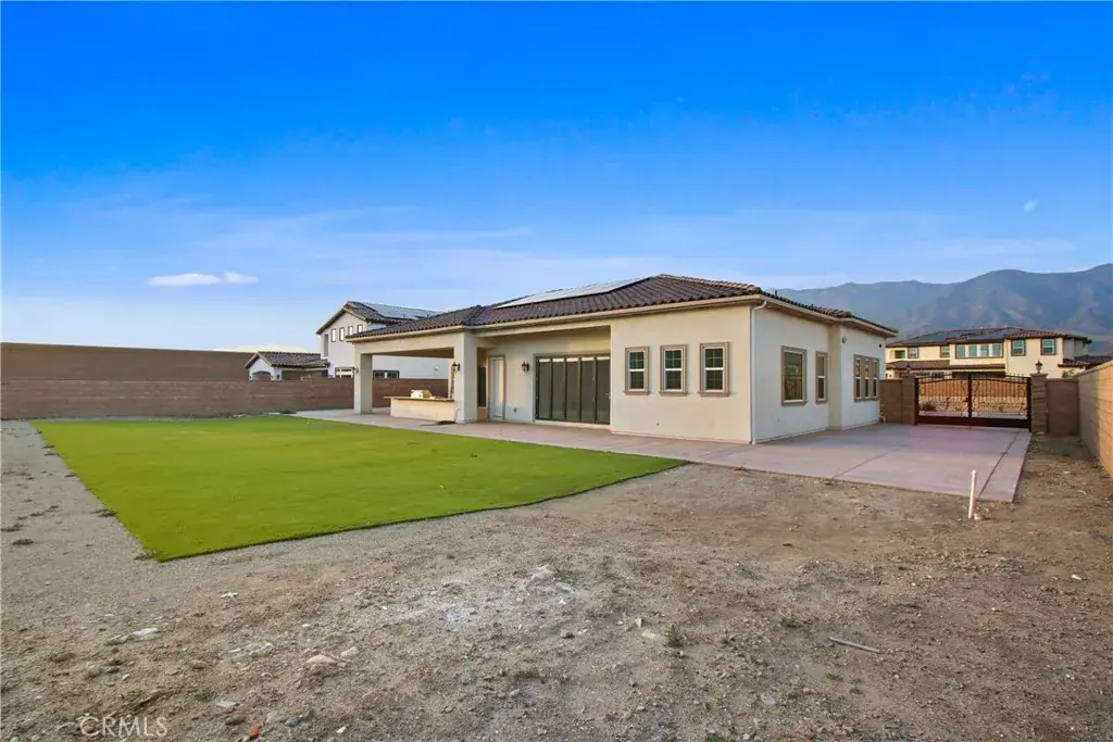 Welcome to 13715 Copley Drive, Rancho Cucamonga, a stunning brand-new luxury estate offering 4 bedrooms, 5.5 bathrooms, and 4,554 sq ft of refined living space on a ½-acre horse-zoned lot in an exclusive enclave of custom homes. Designed for modern living, entertaining, and multi-generational flexibility, this residence impresses from the moment you enter through the 8-foot custom double entry doors, opening to soaring ceilings and a bright open-concept floor plan. Expansive living areas are enhanced by three bi-folding glass doors that seamlessly connect indoor and outdoor spaces. The chef’s kitchen is a showpiece featuring high-end Forno appliances, premium finishes, and generous workspace—ideal for hosting large gatherings. Each bedroom includes its own private en-suite bath, while a striking custom fireplace feature wall adds warmth and architectural elegance. Finishes throughout include Spanish porcelain slab countertops, full-height shower walls, frameless stainless shower doors, and upgraded lighting and plumbing fixtures. Built with efficiency and comfort in mind, the home includes a fully paid solar system with a battery backup, dual-zone HVAC, and pre-wiring for smart home features. The outdoor space offers a resort-style setting with RV parking and double gates, stamped colored concrete, a built-in BBQ island, outdoor fireplace, and approximately 3,000 sq ft of premium artificial turf. The flat, usable lot provides excellent ADU potential, while front landscaping features water-saving drip irrigation. Additional highlights include a low tax rate, low HOA, city sewer connection, stunning mountain views, and access to the highly regarded Etiwanda School District. This is a rare opportunity to own a new luxury estate on a half-acre lot in one of Rancho Cucamonga’s most desirable new developments.