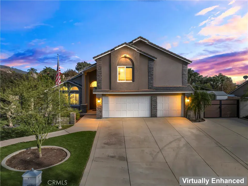 Nestled on a peaceful cul-de-sac within the sought-after equestrian community of Alta Loma, this beautifully maintained residence is perfect for both the weekend warrior and the frequent entertainer. Immaculate inside and out, this home exudes pride of ownership at every turn. The front yard is a showpiece of curb appeal with lush mature trees, meticulous landscaping, and bold masonry accents of rock, slate, and stone. Wooded side gates open to a private backyard retreat that truly feels like your own resort oasis. Enjoy RV parking, four storage sheds, a massive gable-style covered patio, gazebo, and wood arbor trellis—ideal for entertaining or even hosting special events. The outdoor amenities continue with a Pebble Tec saltwater pool and spa, outdoor fireplace, putting green, and winding hardscape walkways surrounded by block wall fencing. There’s even space to build a two-horse stable with direct access to the community’s bridle paths leading to Heritage Park Equestrian Center. Inside, the grand dual-door entry opens to a spacious foyer and wood-accented staircase. The formal living room and expansive family room flow seamlessly into the kitchen and dining area, offering stunning views of the backyard oasis. Highlights include recessed lighting, a wood-burning fireplace with a grand hearth, and flexible living spaces with 4 bedrooms upstairs plus a dedicated office conveniently located downstairs with access to the putting green. The upstairs bathroom also has a jacuzzi tub and tile upgrades. The chef’s kitchen features stainless steel appliances, a six-burner cooktop, dual ovens with warmer, two dishwashers, and ample cabinetry with pantry organizers. The sound-insulated laundry room adds both comfort and convenience. Dual HVAC systems for ultimate climate comfort and efficiency Upstairs, the primary suite is a luxurious retreat with a sitting area, three-sided fireplace, dual walk-in closets, dual-head glass shower, jacuzzi tub, and even a bidet. Located within walking distance to highly rated Stork Elementary and other top-rated schools, this is truly a once-in-a-lifetime opportunity to own a home that has it all. Stop dreaming and start living the lifestyle you deserve!