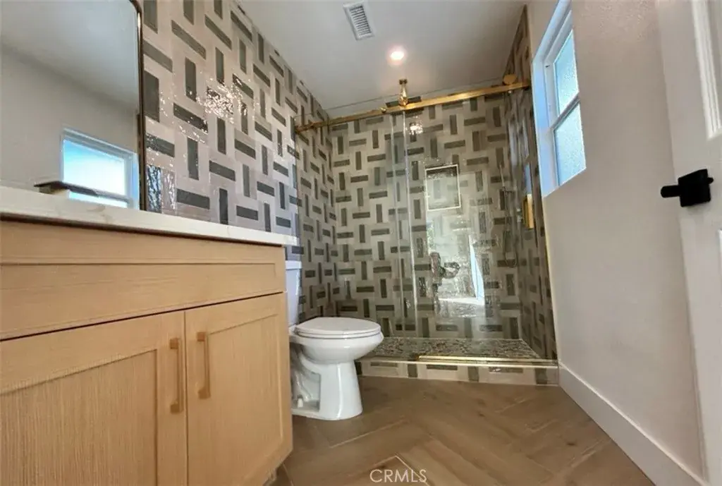 The expansive open kitchen is a true showstopper, offering an abundance of cabinetry, a chef’s stove with upgraded hood range, and a stunning farmhouse sink accented with elegant gold trim. Indoor laundry hookups add everyday convenience. All three bedrooms are generously sized, providing comfort and flexibility for family, guests, or a home office. The hall bathroom has been beautifully updated with modern finishes, while the primary bathroom features a large, upgraded walk-in shower complete with a luxurious rain shower head and sophisticated gold trim.