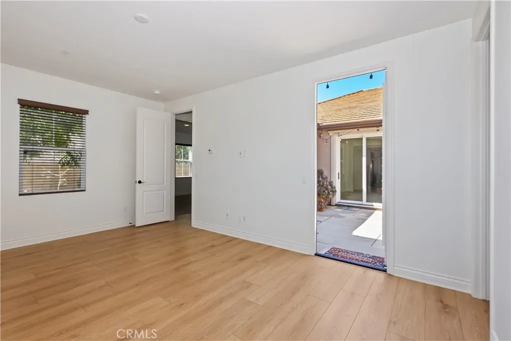 As you enter through the private gate, you’re greeted by a charming courtyard surrounded by windows, featuring a multi-slide door that opens seamlessly into the dining room creating the perfect indoor-outdoor dining experience.