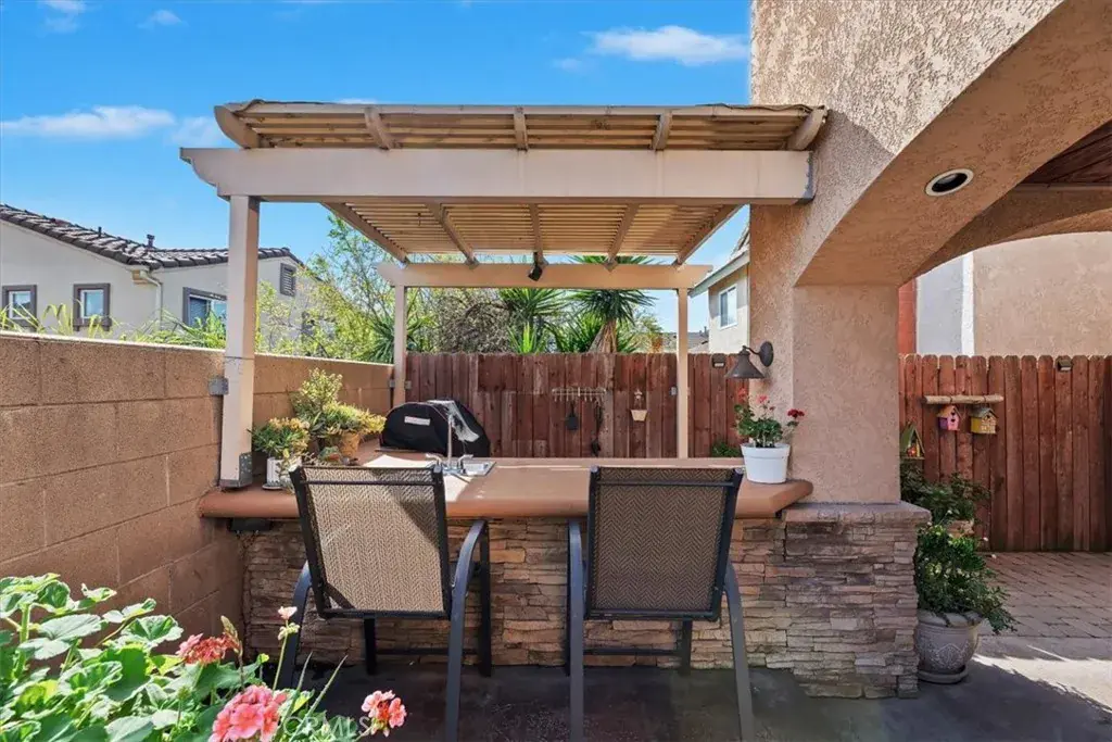 Rancho Cucamonga Beauty – Upgrades Galore with evident pride of ownership in every detail. Nestled in the foothills of Rancho Cucamonga, this beautiful residence offers the perfect blend of comfort, style, and versatility. Ideally located in a sought-after community. Upon entering you will find life-proof laminate wood flooring and raised 6-inch baseboards throughout. The warm inviting grand living room is centered around a stunning stone fireplace. Beautiful architecture with lighted niches to display your beautiful art, sculptures or anything you would like to showcase. Gorgeous formal dining room with crown molding, recessed lighting, and French doors leading to the backyard. The gourmet upgraded kitchen is designed for both everyday living and entertaining, featuring modern finishes boasting granite countertops, stainless steel appliances, a large stainless farm sink, extra storage behind exquisite, reclaimed barn doors, and a walk-in pantry. This four-bedroom property features three spacious bedrooms in the main home. One of these bedrooms offers a built-in Murphy bed that allows for extra space when the bed is tucked away and includes a desk. The separate private room dwelling could be used as a 4th bedroom that includes heating and air — perfect for guests, multigenerational living, a home office, or rental potential. The primary suite will leave you speechless with meticulous upgrades, including recessed lighting, a built-in ironing board, French doors leading to a large balcony, loads of storage for linens and 3 closets with mirrored sliding doors. The upgraded luxurious bathroom showcases dual sinks, granite countertops, a separate vanity area, and a remodeled shower with a jetted tub. Step outside to your own backyard paradise — thoughtfully landscaped and designed for year-round enjoyment. Relax by the outdoor fireplace, host unforgettable dinners under the covered patio perfect for alfresco dining or practice your short game on your private putting green. The covered patio also includes recessed lighting and ceiling fans. The home also includes a private barbecue area. You will also enjoy the community amenities that feature a sparkling pool, spa, and picnic area for larger gatherings. Located in one of Rancho Cucamonga’s most desirable foothill communities, this home offers privacy, lifestyle, and convenience all in one exceptional package. Call today to schedule your private showing.