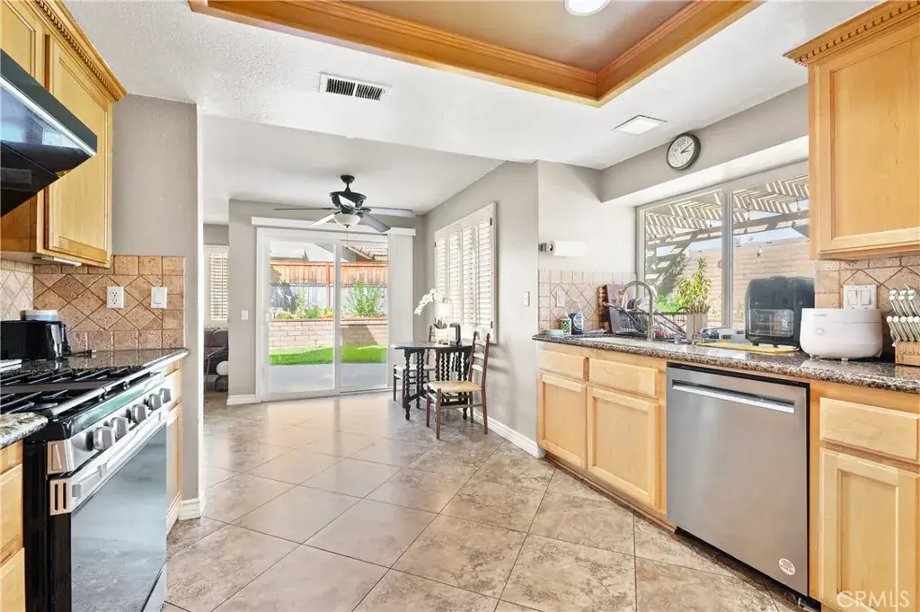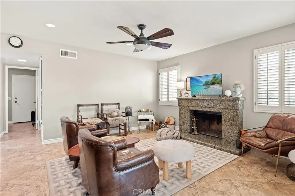 The private backyard features a huge covered patio, a pool-size lot, and a slumpstone wall backing up to the wash. There’s plenty of room to play, along with RV access and gated space for smaller recreational vehicles. Located in a wonderful family-friendly neighborhood, this home is within walking distance to Central Park and Victoria Groves Elementary School, and offers easy access to the 210 and 15 freeways, shopping, dining, Victoria Gardens, Ontario International Airport, and the PE bike and jogging trail.