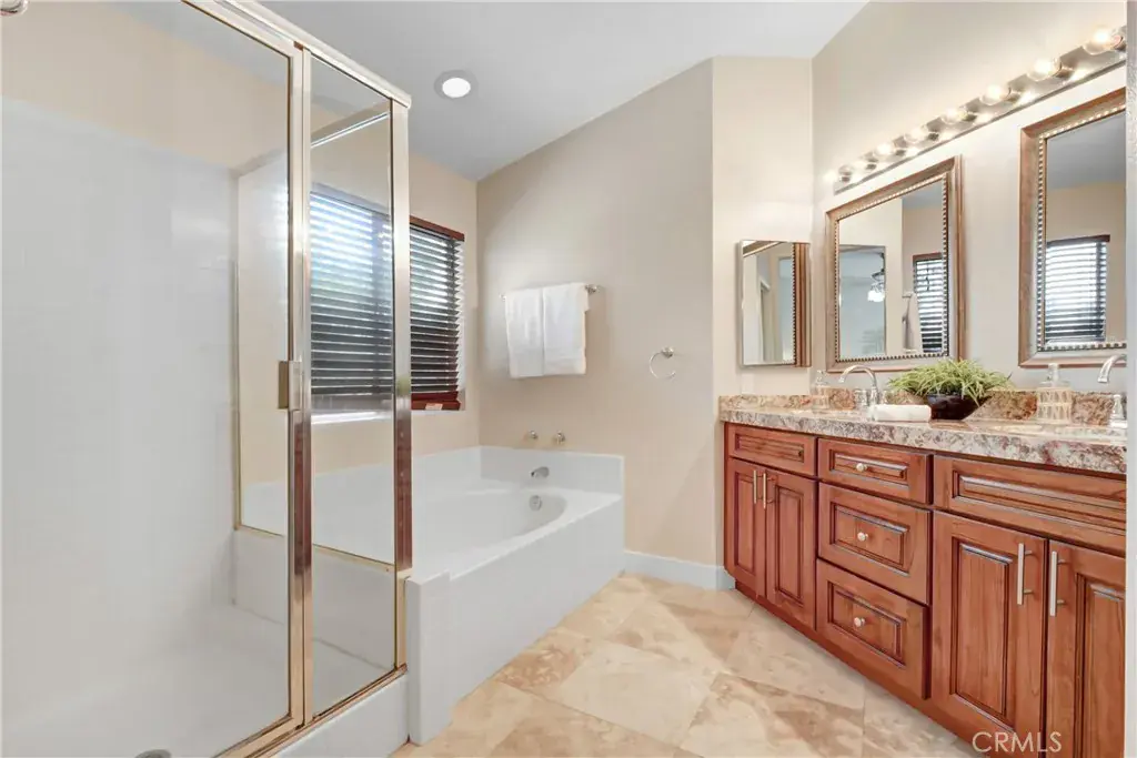 Stunning Two-Story Home in a Highly Desirable Neighborhood This beautifully maintained home offers a spacious and inviting layout, perfect for comfortable living and entertaining. The main floor features a formal living and dining room, soaring high ceilings, along with a charming remodeled kitchen that seamlessly connects to the family room, complete with a cozy fireplace. A versatile bedroom and a full bathroom with a shower provide added convenience on the first floor. Upstairs, you’ll find three additional bedrooms and a generous master suite. The master bedroom boasts ample space, a private en-suite with a separate shower and soaking tub and serene backyard views. Step outside to your private area with patio cover perfect for relaxing and entertaining. The property also features a three-car garage. Nestled in a prime location close to top-rated schools, scenic walking trails, shopping, and major freeways, this home offers breathtaking mountain views and is truly move-in ready. Make this beautiful home yours and enjoy the summer in style! NO HOA!