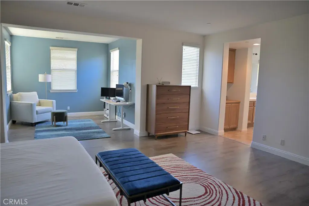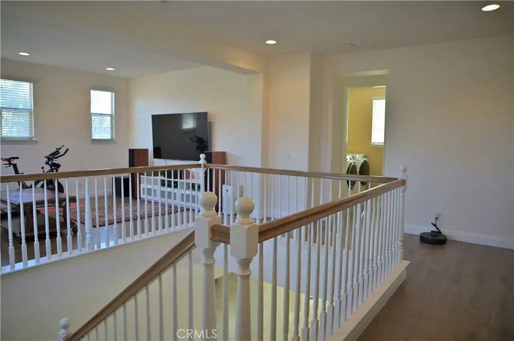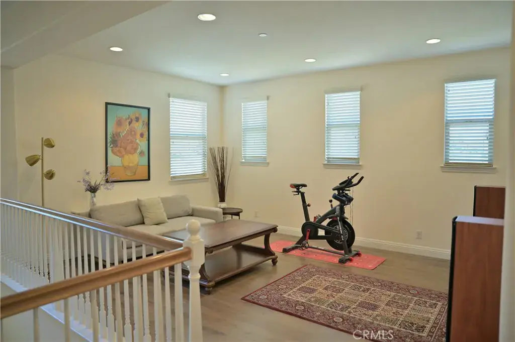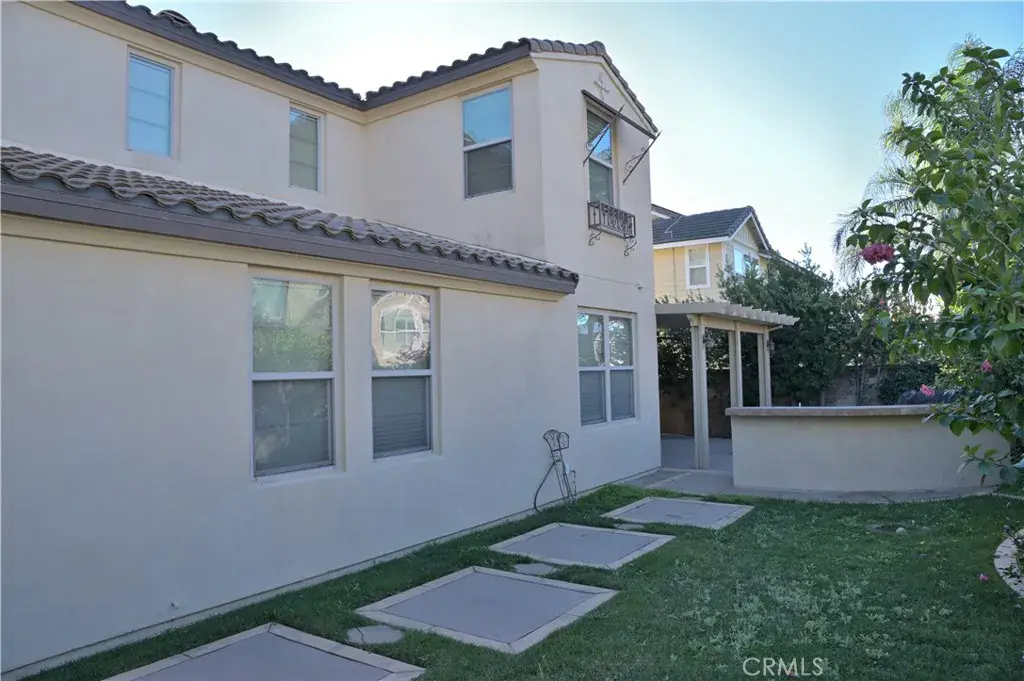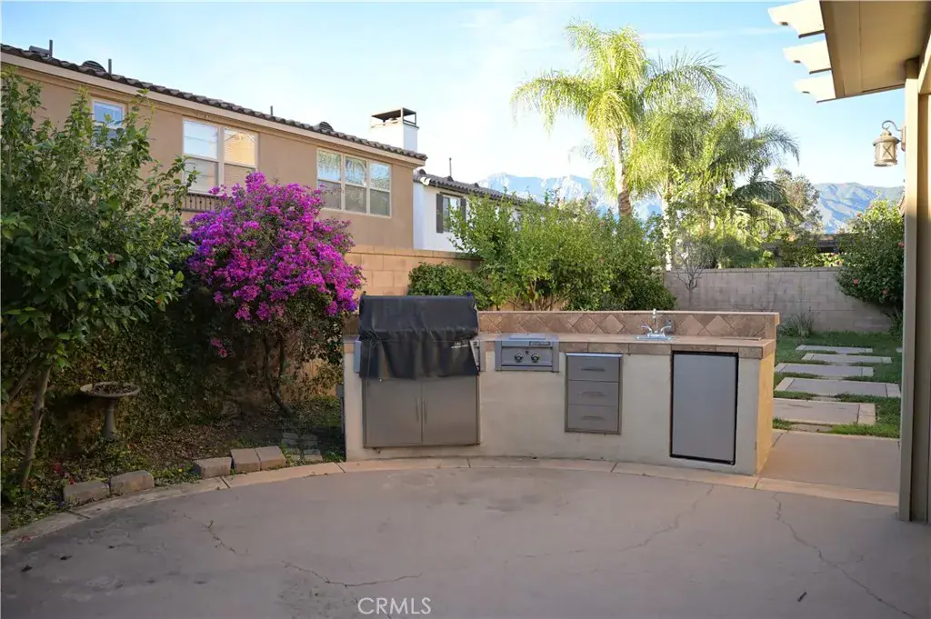 Upstairs, there is a comfortable loft area that can be used as a home theater, game room, or gym. The master suite is spacious and comfortable, featuring a separate sitting area and an en-suite bathroom with dual sinks, a soaking tub, a separate shower, and an oversized walk-in closet. Two additional bedrooms upstairs share a bathroom, each with its own vanity. A separate laundry room is conveniently located at the end of the hallway. A three-car garage provides ample storage space. The backyard is designed for both relaxation and entertainment. Enjoy the built-in barbecue area, complete with a sink, electrical outlets, a double burner, stainless steel cabinets and drawers, and a refrigerator. The covered patio is ideal for weekend barbecues and family gatherings, and the yard is also planted with numerous fruit trees. This home is situated on a quiet cul-de-sac, just steps from the Pacific Electric Trail, within walking distance of award-winning elementary and middle schools, and only minutes from Victoria Gardens and Ontario Mills shopping centers. It offers convenient access to the 15, 10, and 210 freeways.