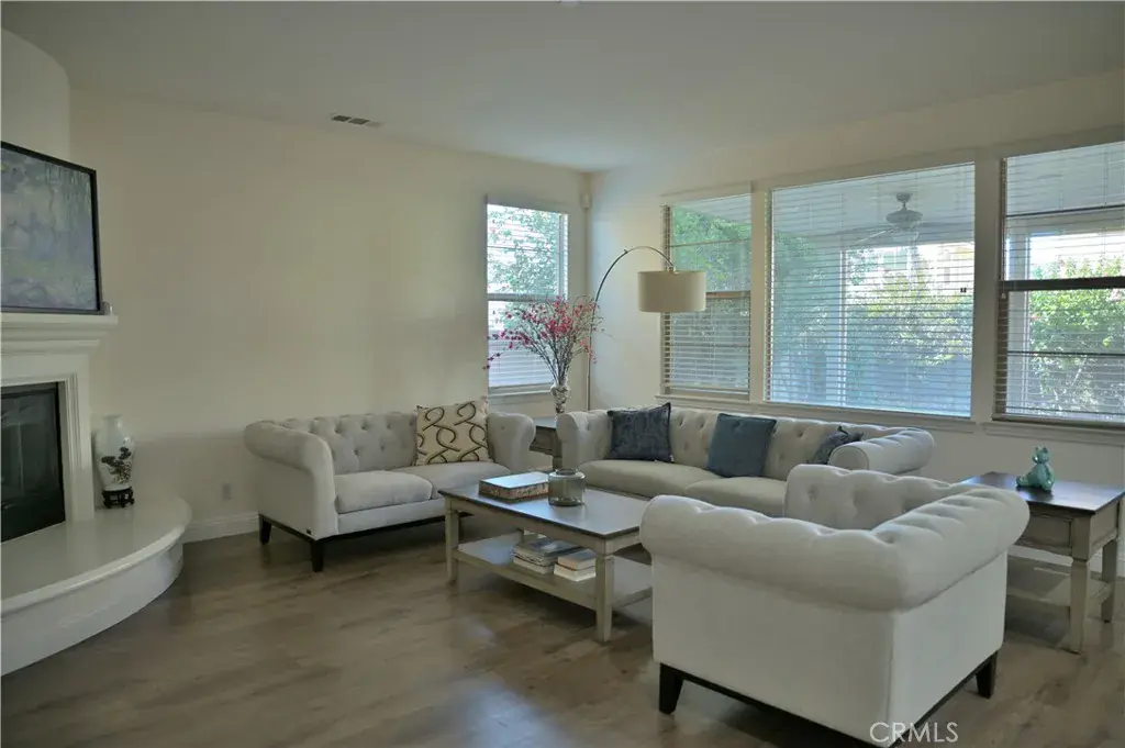 This well-maintained home boasts four spacious bedrooms and 3.5 bathrooms and is located in one of Rancho Cucamonga’s most desirable neighborhoods. Its impressive open floor plan is perfect for modern living and entertaining. Upon entering, you’ll find a thoughtfully designed interior featuring brand new laminate flooring and upgraded baseboards throughout. Sunlight streams through the windows, filling the home with natural light. The first floor includes a separate home office (with French doors), a formal living room, and an elegant dining room. The gourmet kitchen features a large granite island, a walk-in pantry, and a cozy breakfast nook with beautiful views of the backyard oasis. The kitchen opens to a spacious family room complete with a fireplace. Downstairs also features a guest suite with a private bathroom and walk-in closet, perfect for hosting guests or extended family members.