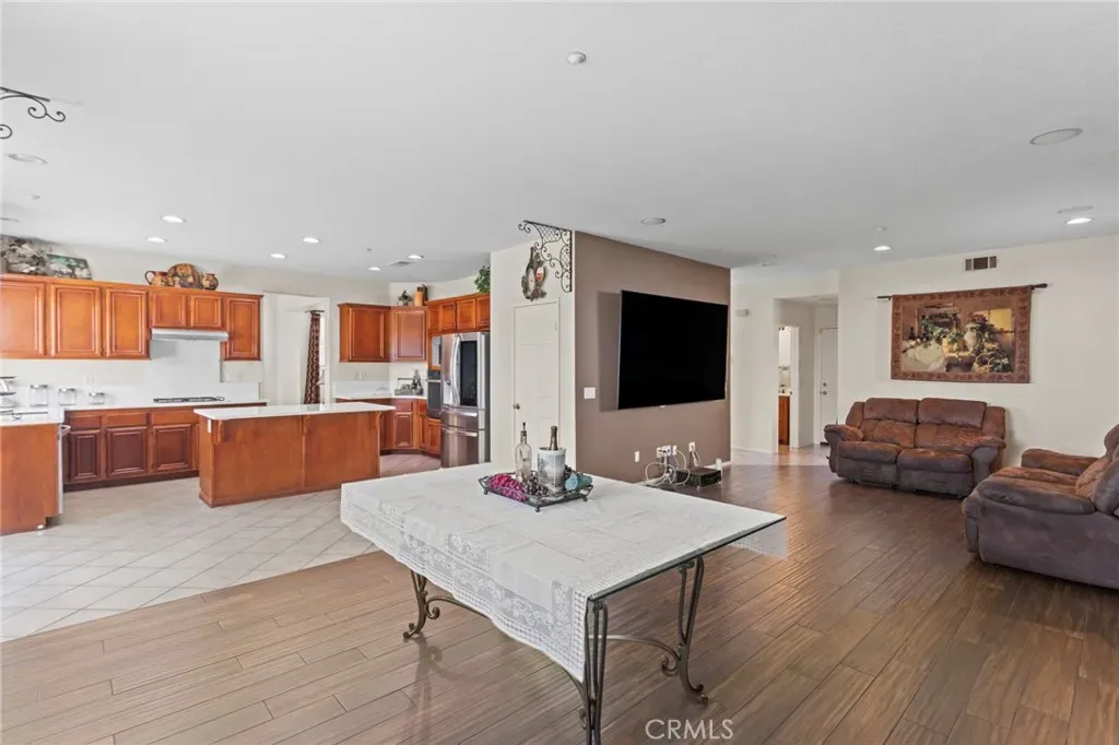 The open floor plan concept is perfect for families and entertaining guests, connecting the kitchen, dining, and living rooms areas.