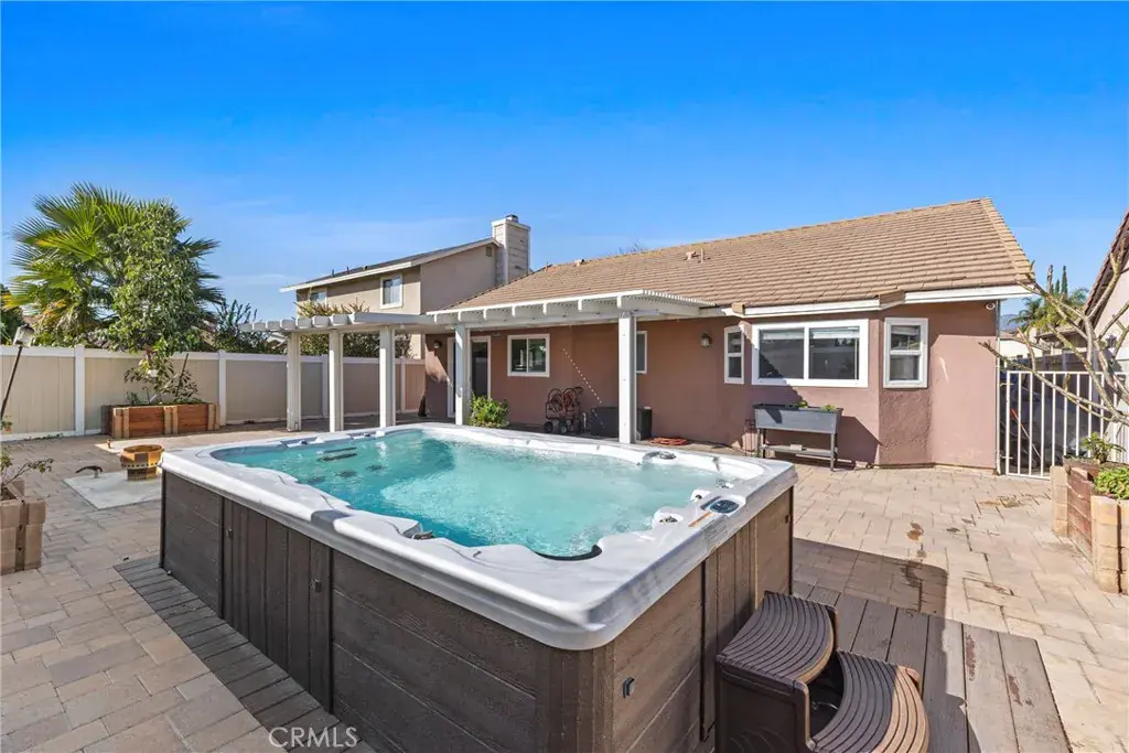 Recent improvements include upgraded windows and a new HVAC system, enhancing comfort and energy efficiency. The backyard offers a built-in swim spa, creating a private outdoor retreat ideal for relaxation or exercise.