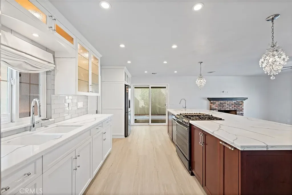 The home features a remodeled chef’s kitchen with a custom bar-style layout and a dedicated coffee bar, creating a great space for both everyday living and entertaining. Appliances included with the home are the refrigerator, washer, dryer, dishwasher, and stove.