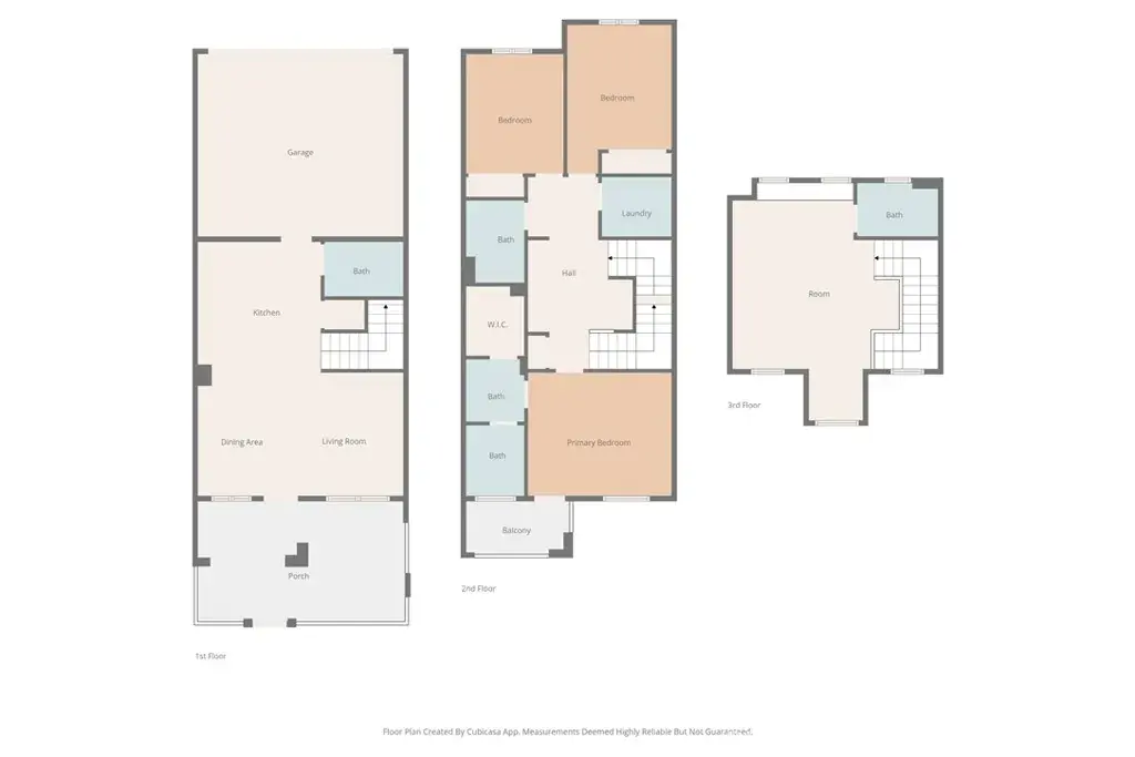 The first floor offers a spacious kitchen and living room with an open and functional layout, along with a convenient half bathroom—ideal for guests. On the second floor, the primary bedroom includes an en-suite bathroom with double sink vanity and a walk-in closet. Two additional bedrooms share a full bathroom, and an upstairs laundry room adds everyday convenience. The third floor features a large loft with a full bathroom, which can be used as a home office, playroom, or optional fourth bedroom. The home has fresh interior paint and is equipped with a tankless water heater. The home features a porch, perfect for outdoor relaxation.