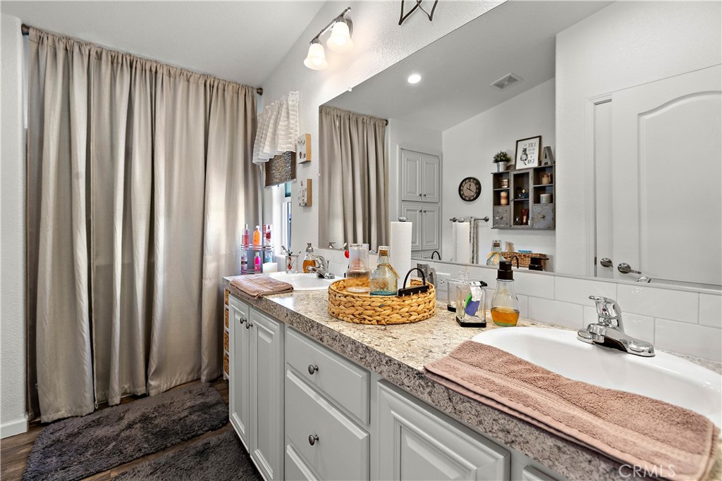 Enjoy fresh landscaping with new gravel, new exterior paint, river rock, and elegant pavers leading to your private outdoor retreat. Custom privacy patio shades and a handcrafted wood fence create a serene setting for relaxing or entertaining.