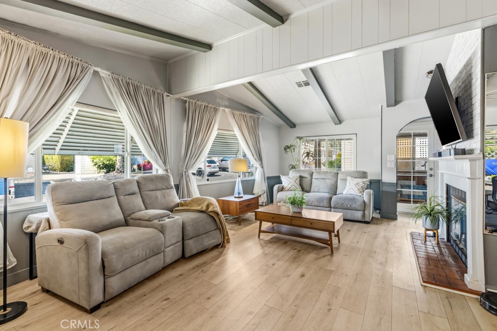 Welcome to #140 this beautiful home features a spacious island kitchen that is open to the family room and dining area. Newly installed large windows that fill the home with natural light and adds comfort to the space. The living room showcases a charming fireplace, perfect for cozy evenings. The home has a full glass and screened California room with its own entrance. A spacious laundry room that includes a sink and extra storage cabinets. Both Bathrooms offer walk in showers and the master bathroom has a soak tub with a beautiful vanity and extra storage space. The exterior of the home was recently remodeled with an addition of new fencing all around the home for more privacy. There is driveway parking that fits up to 3 vehicles and guest parking right in front of the home which is a huge convenience. Located across from the Pacific Electric Trail for those morning and evening walks, close to shopping and dining, and a short drive to beaches and mountains. Just 8 minutes away from San Antonio Hospital and all the residing doctors, This one is a must see and won’t last long! This is a 55+community.