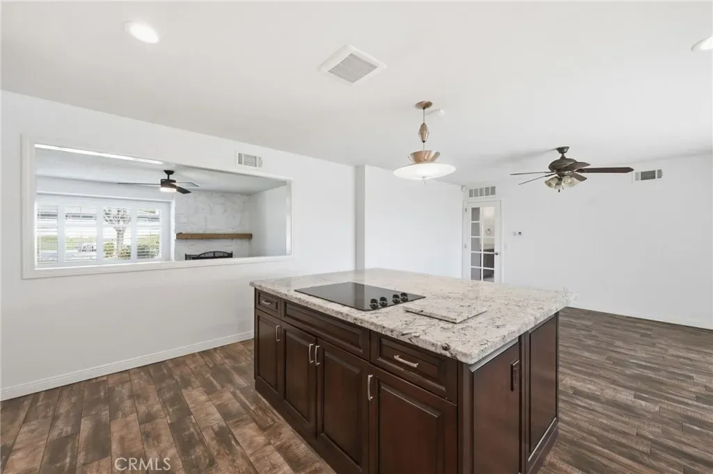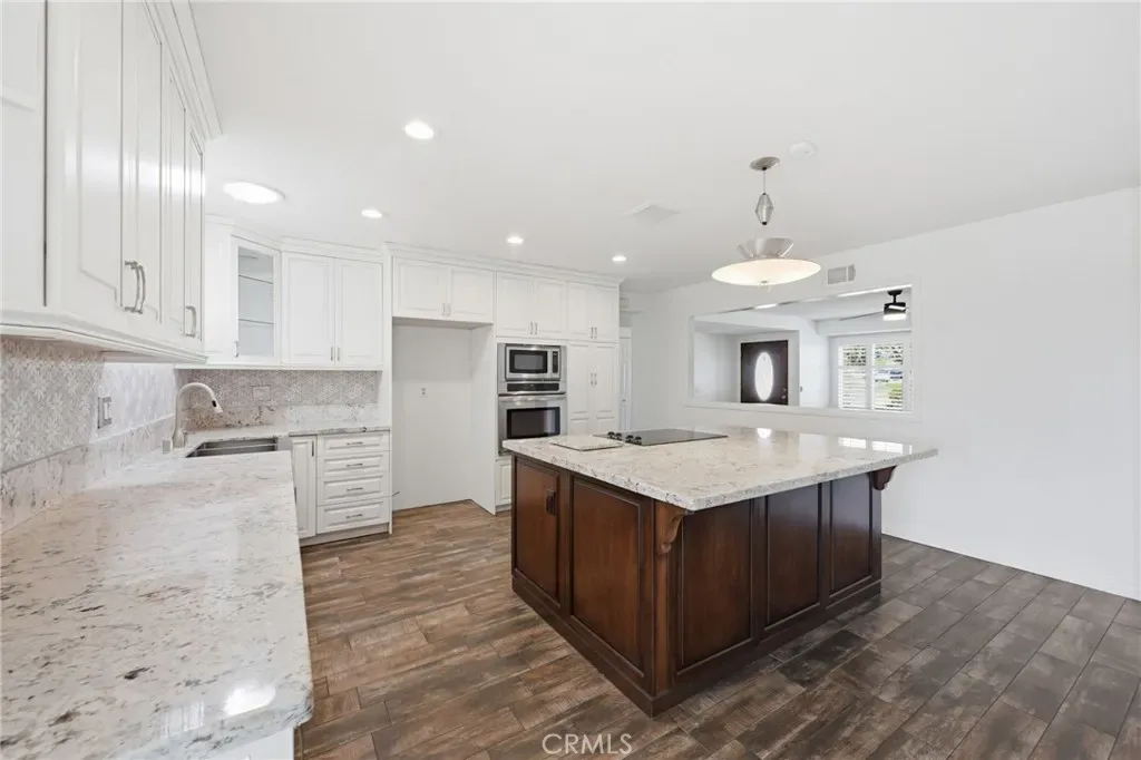 The heart of the home is the beautifully updated kitchen featuring abundant cabinetry, stunning counter-tops, stainless steel appliances, and a large center island—perfect for gathering, entertaining, and everyday living. The open-concept design flows seamlessly into the dining area, creating a bright and inviting space.
