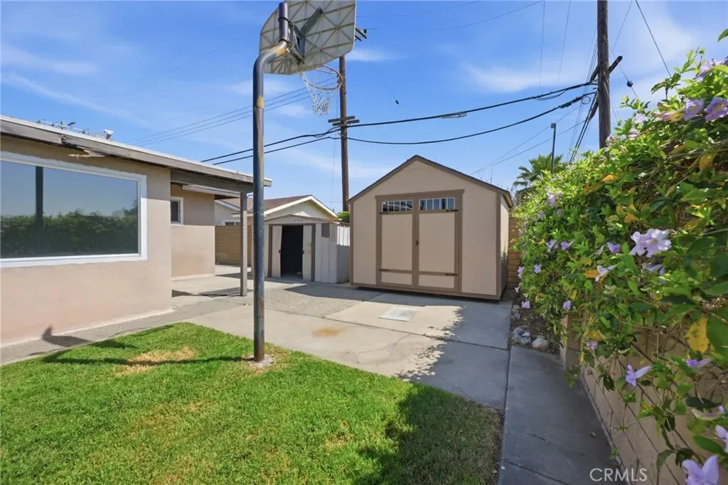 Enjoy great curb appeal with a gated front yard, charming stone accents, and a wide driveway with gated side access—offering ample parking and potential RV access. The backyard features a spacious grassy area, mature fruit tree, patio space, two storage sheds, and a basketball hoop—perfect for outdoor enjoyment, play, or entertaining.