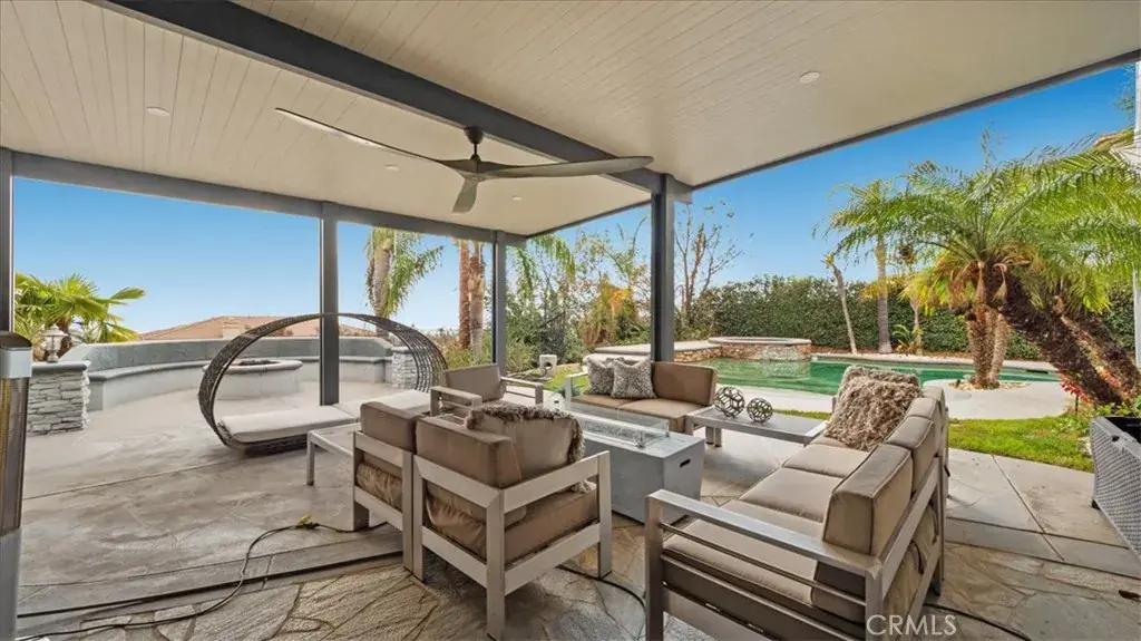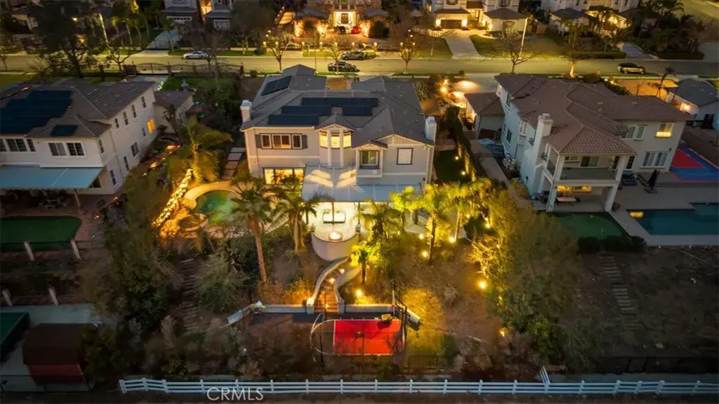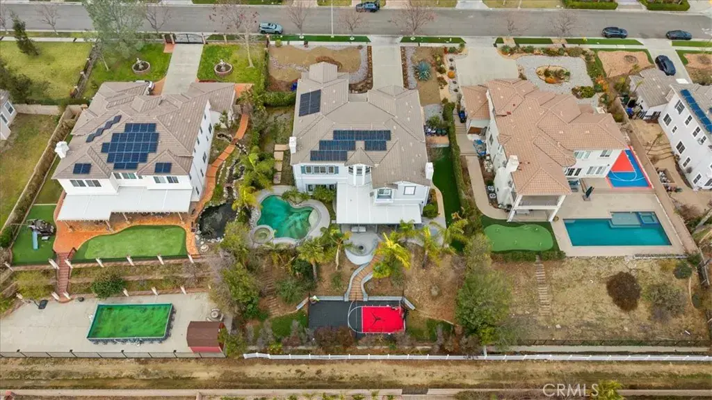 The expansive backyard features a large Alumawood-covered patio with a ceiling fan, two fire pits, and a custom-built barbecue, creating the perfect outdoor entertaining space. Additionally, the luxurious pool and spa offer a resort-style experience, while a private custom basketball court provides added recreation. The upgraded four-car garage is equipped with electric car chargers, and one of the garages is diamond-blasted to create a showroom-quality finish. This home also includes paid-off solar panels, with no HOA and low taxes. Don’t miss the opportunity to own this exceptional property—it’s truly a luxurious dream home.