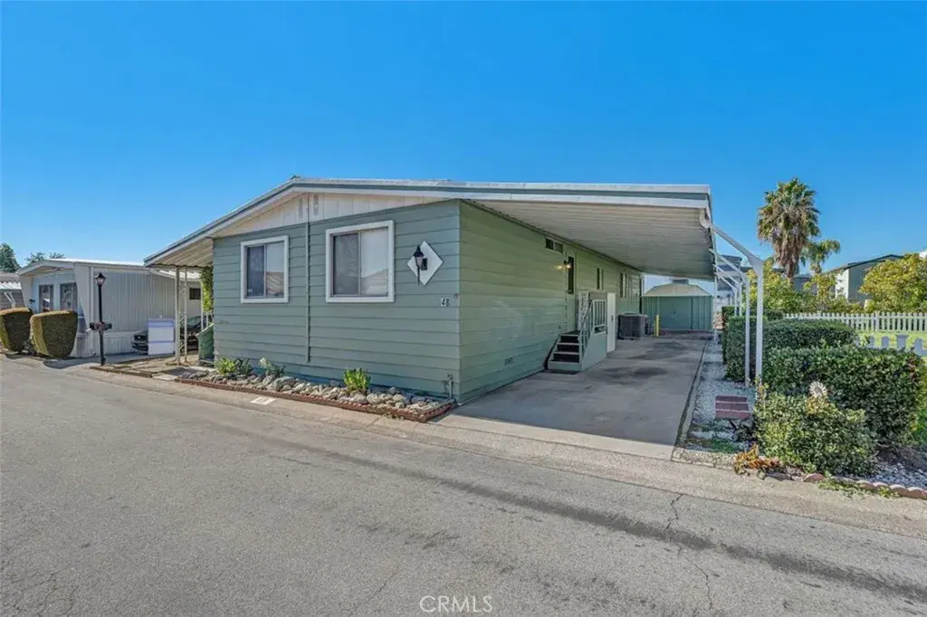 Welcome to The Pines! An inviting all-ages community in the heart of Rancho Cucamonga! This spacious 3 bedroom, 1.75 bath manufactured home offers 1,440 sq ft of comfortable living with a bright, open layout. Enjoy a large living area with a mix of laminate and carpet flooring, a functional kitchen with a gas range, and the convenience of inside laundry. The home sits on a rectangular lot and features a covered patio, perfect for relaxing outdoors. Additional highlights include central heating and air, two covered carport spaces, and a storage shed at the end of the driveway. Located between Archibald and Hermosa off Foothill, this home is situated in a well-kept community with great amenities, including a community pool, spa, and billiards room. The land lease is $1,325/month not including utilities. To be confirmed with park management.