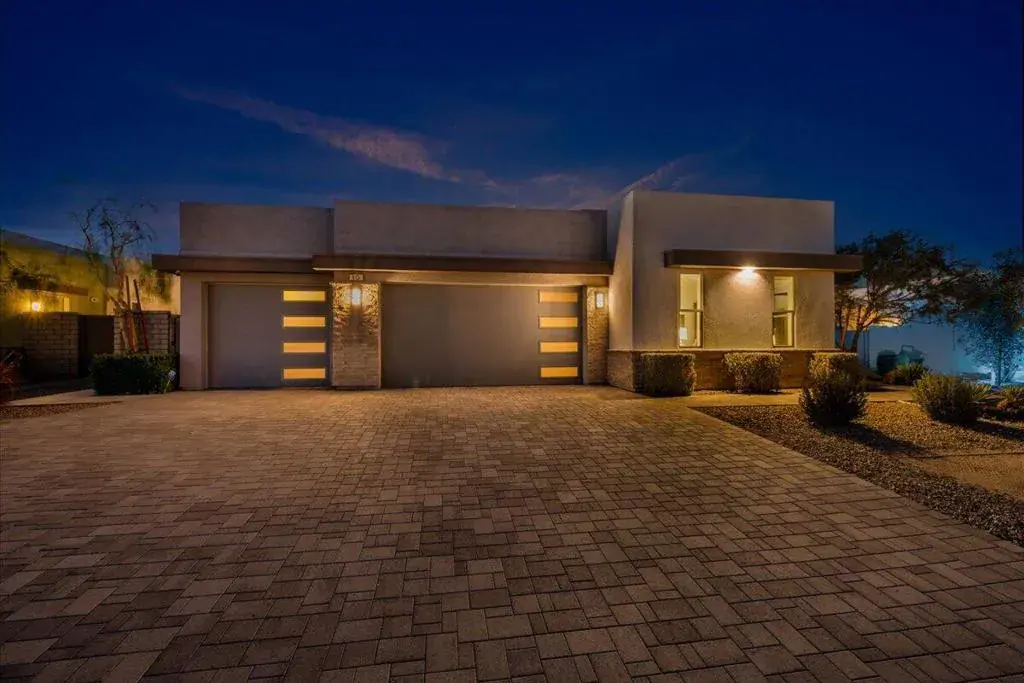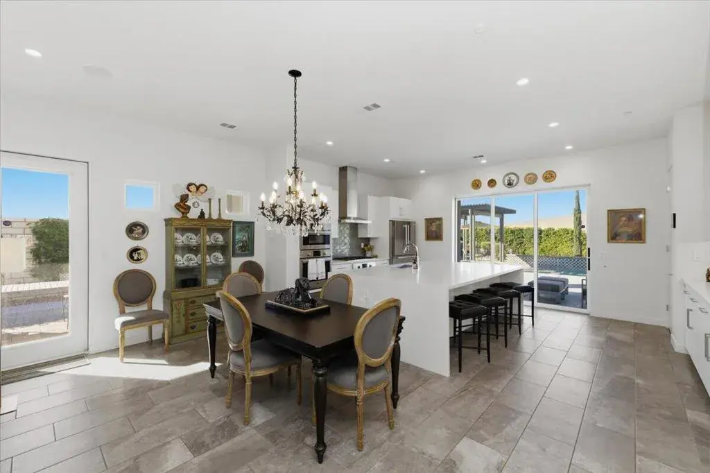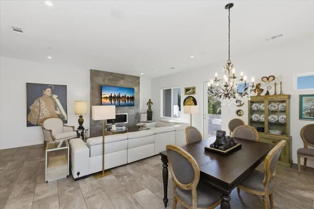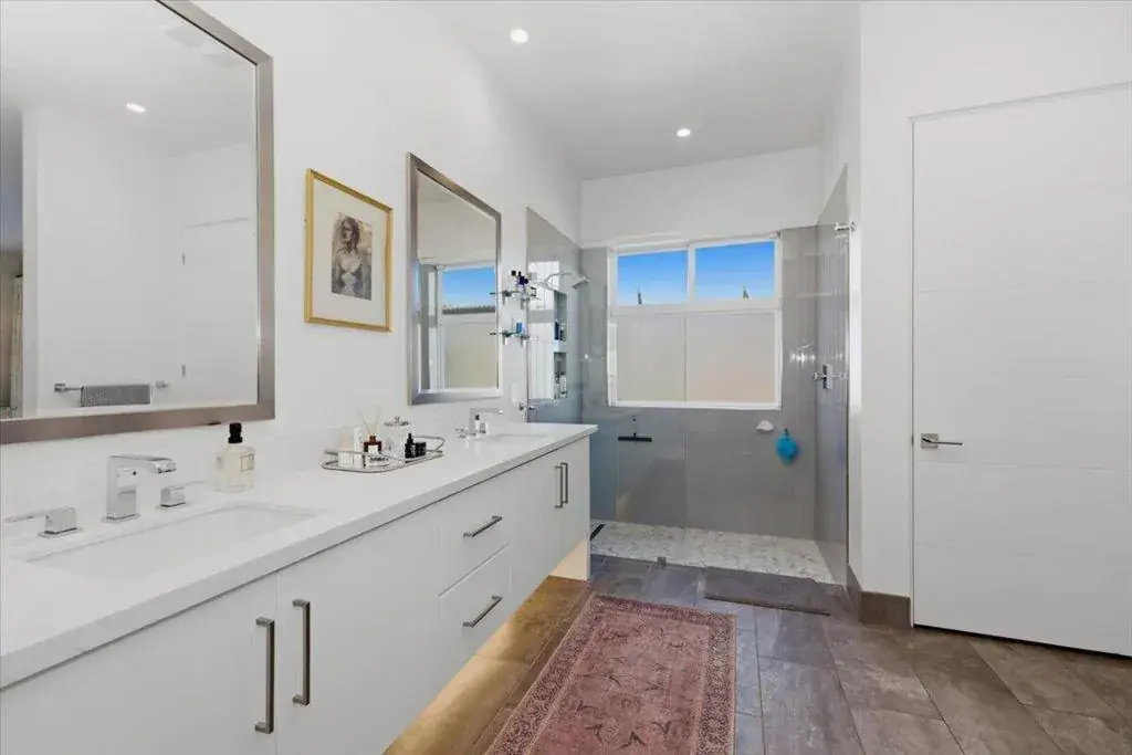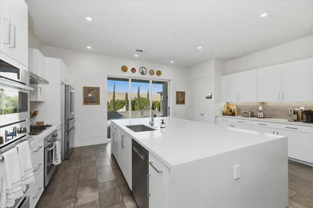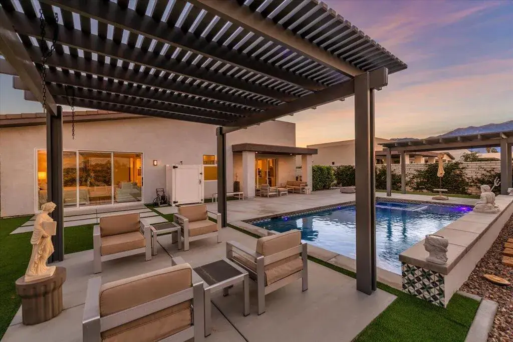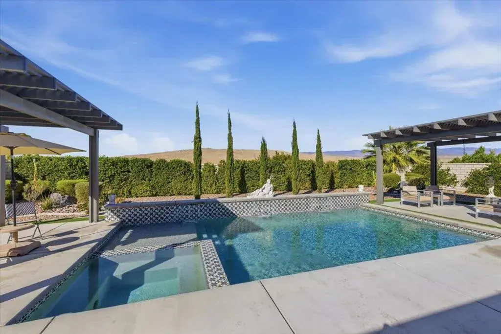 Tucked inside Iridium, a boutique gated enclave of just 27 New Century Modern residences in Rancho Mirage, this newer home channels the clean lines and easy elegance of classic desert design–reimagined for today’s lifestyle. Inspired by the mid-century movement that shaped the Coachella Valley, this fully equipped mini estate delivers a polished blend of luxury, comfort, and effortless indoor-outdoor living.Inside, an open great-room layout is elevated by soaring 10-foot ceilings, recessed lighting, and expansive multi-slide doors that dissolve into two private outdoor patios–perfect for morning coffee, golden-hour cocktails, and everything in between. The resort-style backyard takes center stage with a Neptune-inspired saltwater pool and spa, outdoor shower, and fire pit, all framed by tranquil panoramic mountain views–including twilight skies with sightlines toward San Jacinto and Big Bear.Designed with privacy in mind, the home offers four bedrooms. The primary suite is a serene retreat with an oversized shower, accent-lit double vanity, and a generous walk-in closet. The gourmet kitchen flows seamlessly into the great room and wet bar, featuring top-tier stainless appliances and a quartz slab island–tailor-made for entertaining.Modern conveniences include a whole-home water purification + softener system, tankless water heater, smart lighting and home features, high-speed data wiring, and owned solar–a crisp, contemporary take on iconic desert living at its most refined.