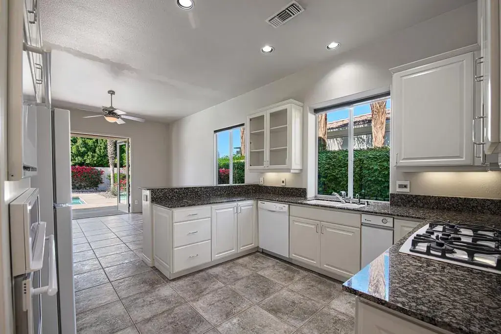 Discover one of the best opportunities in Rancho Mirage! This exceptional home in the coveted Versailles Subdivision has been meticulously maintained by the original owners. As you step through the spacious courtyard and double door entry, you’re welcomed into a grand great room featuring soaring ceilings, gas fireplace and a wall of glass that allows the flow of soft natural light and framed views of the mountains and your private pool and spa. Welcome to your perfect entertaining space, where the kitchen and dining area blend seamlessly, offering generous cabinet storage and stylish bar seating. Each of the three bedrooms are strategically positioned to ensure total privacy for everyone. The primary suite features captivating mountain vistas, providing a peaceful backdrop. Indulge in the primary bathroom with double vanity, separate shower, and inviting soaking tub, all designed for your comfort and relaxation. Guest bedroom # one is an en-suite with direct access to the front courtyard with a separate entrance ensuring convenience and privacy for visitors. The backyard is ideal for gatherings with a large, covered patio and plenty of room for seating and outdoor dining. Pool and spa are in perfect condition with lush landscaping all around creating a tranquil vibe. Oversized garage and low HOA dues! Versailles is a gated community with tennis courts and green space. Convenient to shopping and restaurants and just a short drive to Palm Springs or El Paseo.