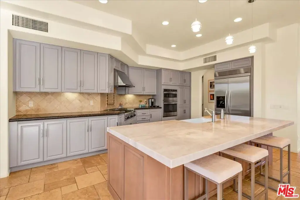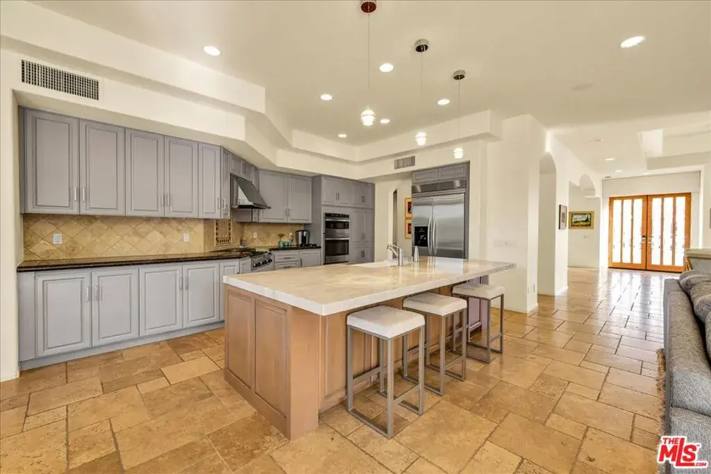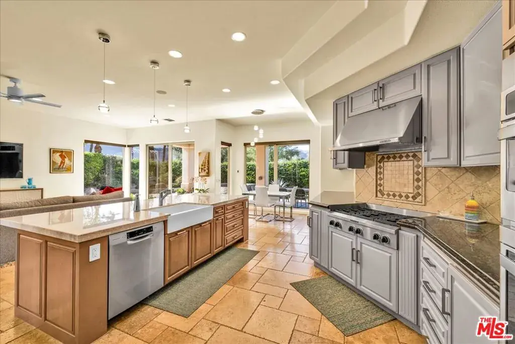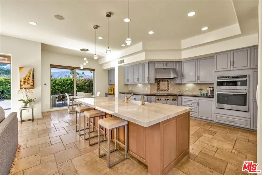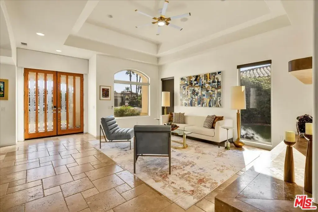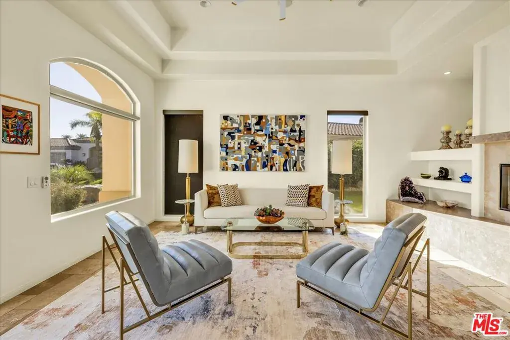 Wake up each day to luxurious Rancho Mirage living in the exclusive gated enclave of Carrera Estates. Set on an oversized lot with breathtaking San Jacinto Mountain views, this residence invites a lifestyle centered on elegance, entertaining, and privacy. Sunlight pours through expansive windows, illuminating soaring 14 foot ceilings, travertine floors, and open living spaces designed to gather and relax. Featuring 4 bedrooms, 5 bathrooms, including a casita with a private entry to welcome guests. Gather in the gourmet kitchen which seamlessly flows into the great room and formal dining areas. Retreat to the serene primary suite with its high ceilings, dual vanity bath, and walk-in closet. All bedrooms are ensuite with patio access. Evenings are best enjoyed outdoors, where lush landscaping surrounds a custom saline Pebble Tec pool and spa beneath a star-studded desert sky. Home has solar panels and a climate-controlled 3-car garage, plus a private gated entry. Minutes to Eisenhower Hospital and golfing. Enjoy a stroll to nearby dining, shopping, and entertainment. This home offers more than a place to live. It delivers a refined desert lifestyle.