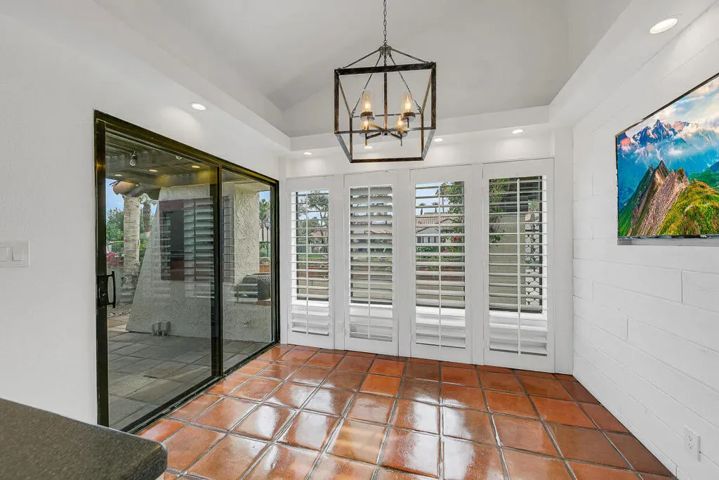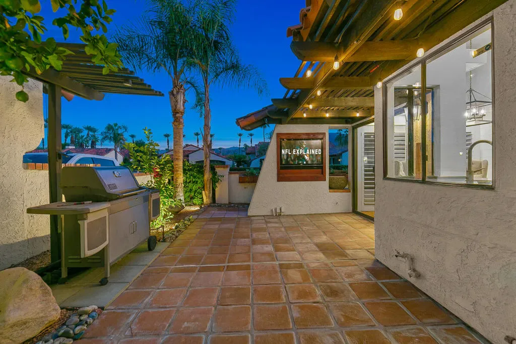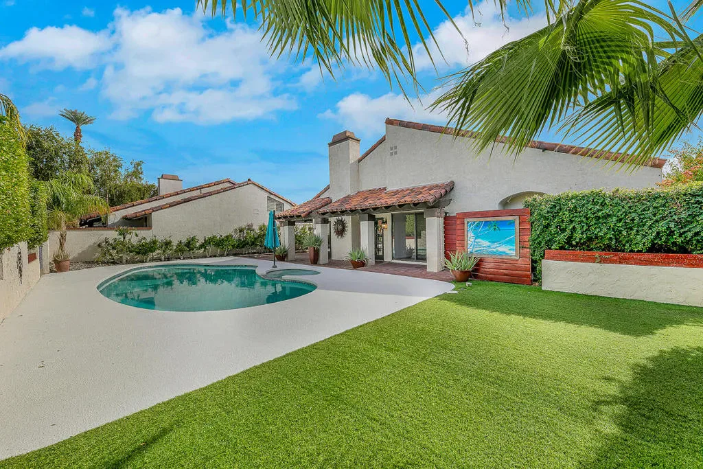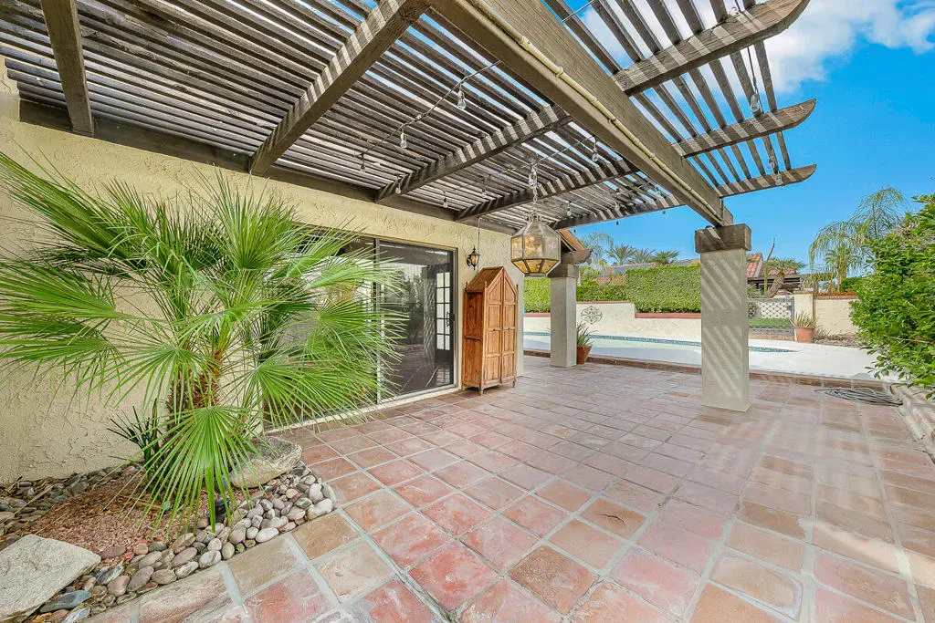 Tucked away on a quiet cul-de-sac inside the gated community of Casas de Seville, this European-inspired home feels like a private desert escape in the heart of Rancho Mirage. From the moment you arrive, there’s a sense of calm–freshly painted walls, warm terracotta Spanish tile floors, and classic architectural details that give the home a timeless, inviting feel.Inside, vaulted ceilings create an open, airy atmosphere, while new flooring and beautifully updated bathrooms add a fresh, modern touch. Natural light fills the living spaces, making the home feel both spacious and comfortable–perfect for everyday living or relaxed entertaining.Step outside and the magic continues. The backyard is your own peaceful retreat, where mountain views frame the private pool and spa. Whether you’re enjoying a quiet morning coffee or winding down at sunset, this outdoor space offers the kind of serenity that makes you want to linger a little longer.The three-car garage provides plenty of room for cars, storage, or hobbies, and the cul-de-sac location adds an extra layer of privacy. Beyond your front door, Casas de Seville offers beautifully maintained grounds with four community pools, two tennis courts, and lush greenbelts–all within a secure, well-kept neighborhood.Centrally located near Rancho Mirage’s best shopping, dining, and golf, this home offers the perfect balance of elegance, comfort, and convenience. Lease $5,500.00 per month – call for details. The home has leased solar. It’s not just a place to live–it’s a place to slow down, relax, and truly enjoy desert living.