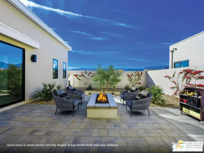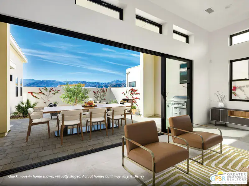 Welcome to Cotino, a Storyliving by Disney community, located in Rancho Mirage. Nestled on a great street and in close proximity to the voluntary Artisan Club and Cotino Bay, this exquisite 3-bedroom, 3-bathroom home is approximately 2,925 square feet and thoughtfully designed for those seeking a quick move-in home at Cotino. Built by Shea Homes as part of their Grand Collection, this stunning Sonora design showcases a distinctive Oasis exterior elevation that blends modern style with timeless elegance. This residence invites you to discover a thoughtfully designed open-concept floor plan that seamlessly connects spacious living areas for comfort and ease. The elegant primary suite serves as a private retreat, featuring an expansive bath and a generous walk-in closet. Two secondary bedrooms, each with their own baths, provide ample space for guests or family. The well-appointed kitchen is a chef’s dream, showcasing gourmet-quality finishes, a large central island perfect for gathering, and a walk-in pantry for abundant storage. Step outside to the expansive outdoor living area, accessible from both the great room and the primary suite, ideal for entertaining or enjoying tranquil moments. A versatile flex space offers the perfect setting for an office, entertainment room, or hobby studio, tailored to your lifestyle needs. Cotino combines natural beauty, charming parks, and the magic of Disney to create a unique and vibrant community — perfect for beginning your next chapter. Come see for yourself and experience all that this exceptional community has to offer.