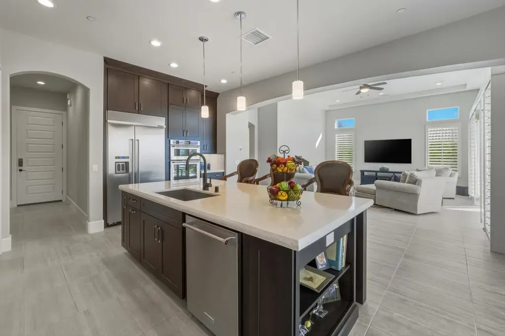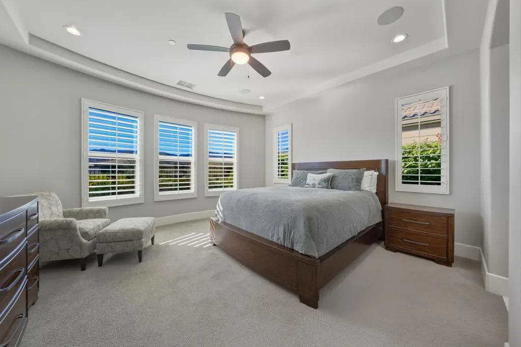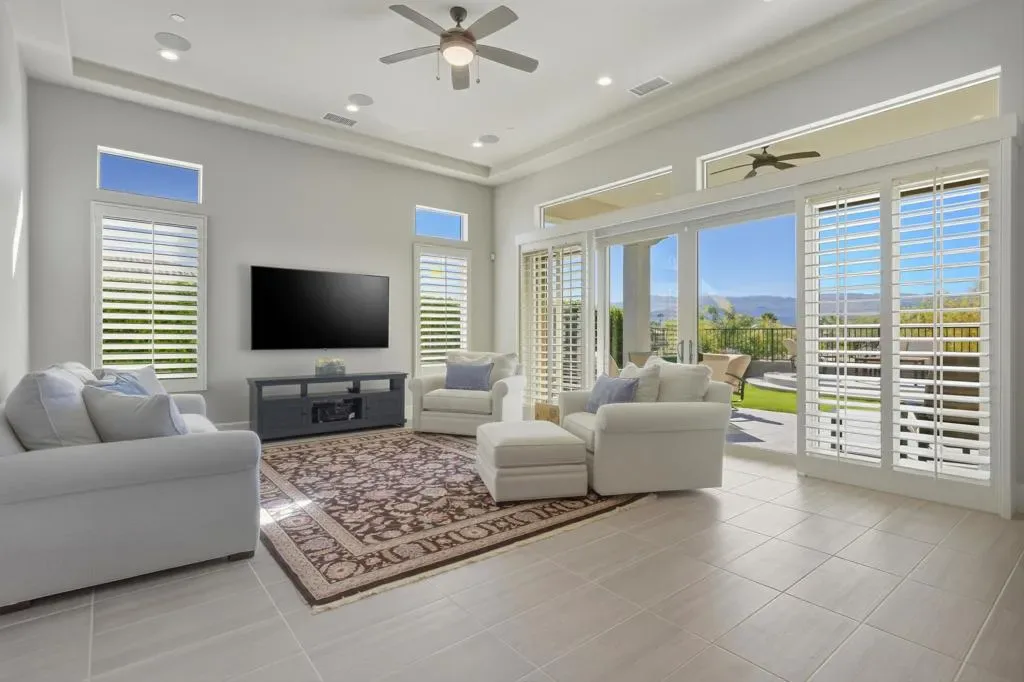 WOW, Incredible Price Reduction!! Impeccably Upgraded Desert Retreat — Modern, Versatile & Move-In Ready PREMIUM lot with open space and extraordinary views! Step inside your Serenity Model 2BD/2BA home, complimented with TWO additional versatile, multi-purpose rooms. Perfect for a home office, tranquil retreat, or extra bedrooms.Enhanced with 17 owned solar panels and an extended garage with two EV 220 stations, Rinnai tankless water heater and eight central vac locations, and surround sound. Experience this home in person to fully appreciate every extensive upgrades throughout! Meticulously installed Italian tile flooring flows throughout the home and across all four patios, creating a seamless indoor-outdoor living experience enhanced by three distinct sliding doors. Plantation shutters, bay windows in dining room and primary bedroom-enhancing tray ceilings above. Primary bedroom features glass walk-in shower, and a spacious walk-in closet with skylight. Gourmet kitchen – Kitchen Aide appliances, custom cabinets, center island with cabinets, walk-in pantry. Look no further within this premier 55+ community that offers – Fitness Center, Clubhouse, pools, tennis/pickle ball courts, walking trails, social activities. Fabulous and convenient location within Rancho Mirage. Cheers to 2026 and exciting new life chapters! Stay – Play – Invest!