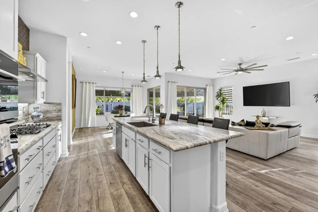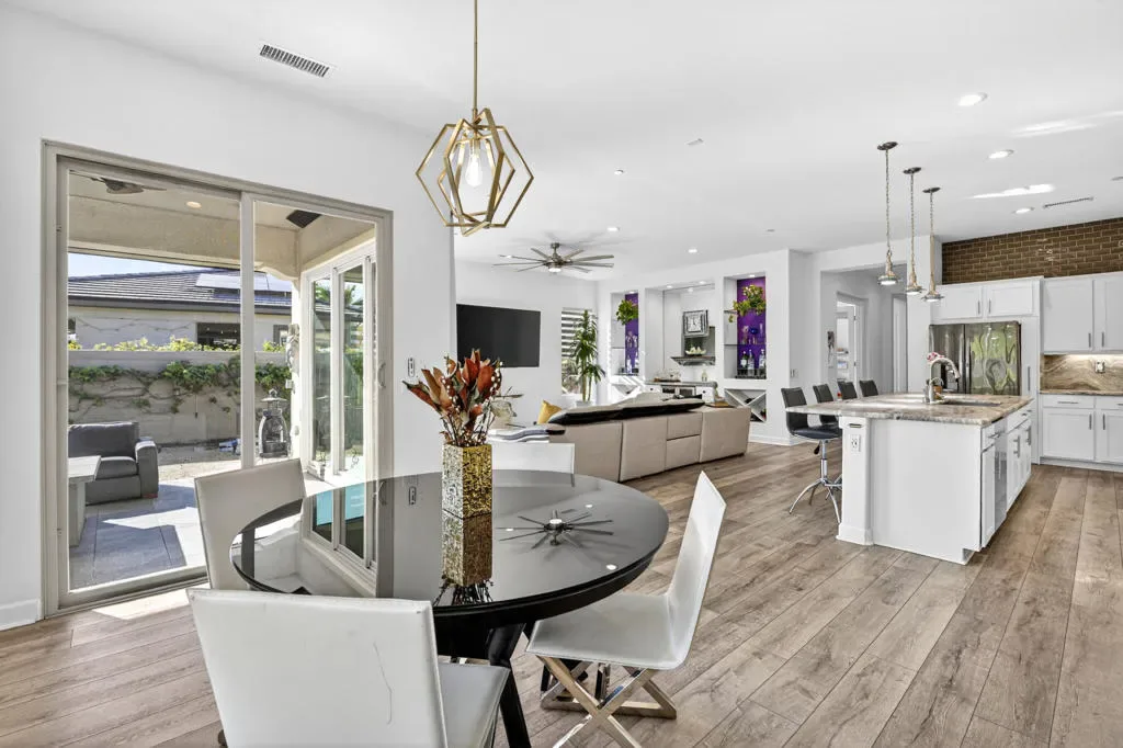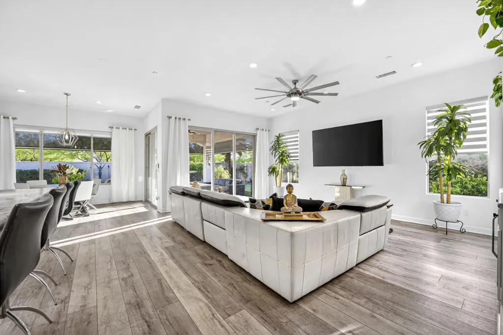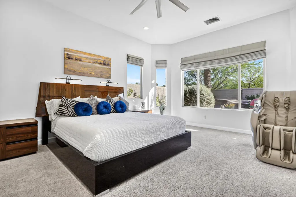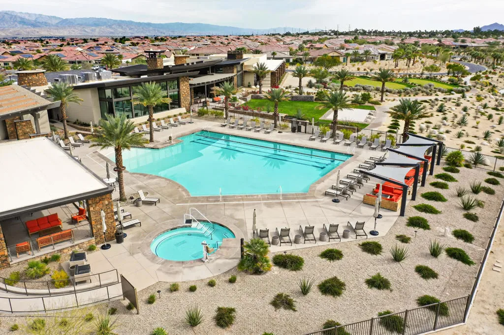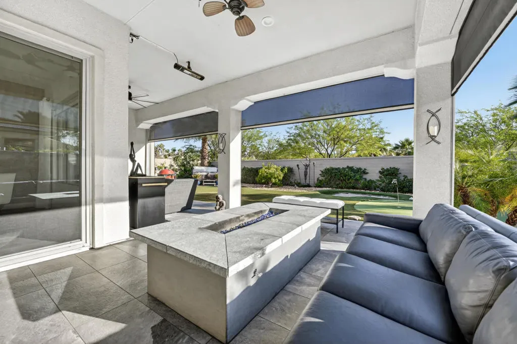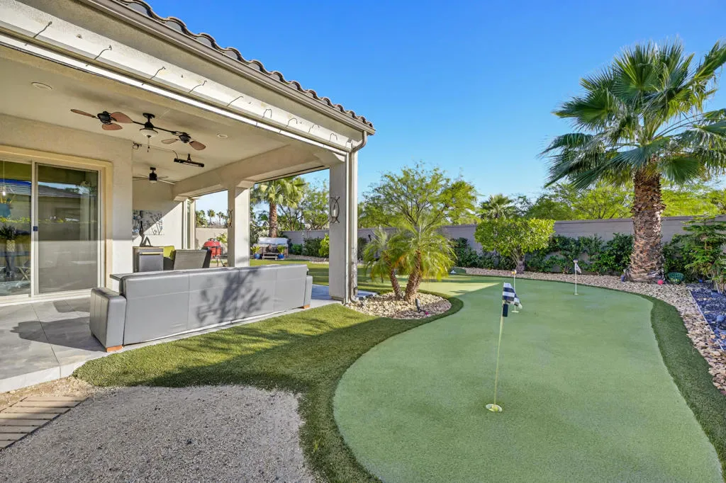 BEST VALUE Preserve floor plan in Del Webb Rancho Mirage! Experience elevated desert living in this beautifully upgraded home within this sought-after 55+ community. Built in 2019 and thoughtfully enhanced throughout, this residence offers 2,034 square feet of refined living space on a generous 7,579 square foot lot, featuring 2 bedrooms plus a versatile den or optional third bedroom and 2 well-appointed baths. Inside, the open-concept great room is designed for both comfort and entertaining, highlighted by custom sliding doors that create seamless indoor-outdoor flow and a striking custom bar complete with wine and beer refrigeration. The chef’s kitchen showcases quartz countertops with full backsplash and subway tile, custom beveled glass pantry door with added shelving, as well as pull-out spice rack, instant hot water dispenser, and a new Bosch dishwasher–blending beauty with everyday functionality. A whole-house water filtration system and custom fans throughout further enhance comfort and efficiency. The spacious primary suite serves as a private retreat, featuring a bay window, huge upgraded custom shower, and bidet toilet for spa-like luxury. Step outside to a resort-inspired backyard designed for year-round enjoyment, where tile patio flooring, motorized shades, cooling misters, custom outdoor fans and heaters, a jacuzzi hot tub, putting green, and a custom gas fire pit create the ultimate setting for relaxation or entertaining under the desert sky. Located in the premier gated community of Del Webb Rancho Mirage, residents enjoy world-class amenities, vibrant social opportunities, and an exceptional active-adult lifestyle–making this impeccably upgraded home a rare opportunity to enjoy the very best of desert living.