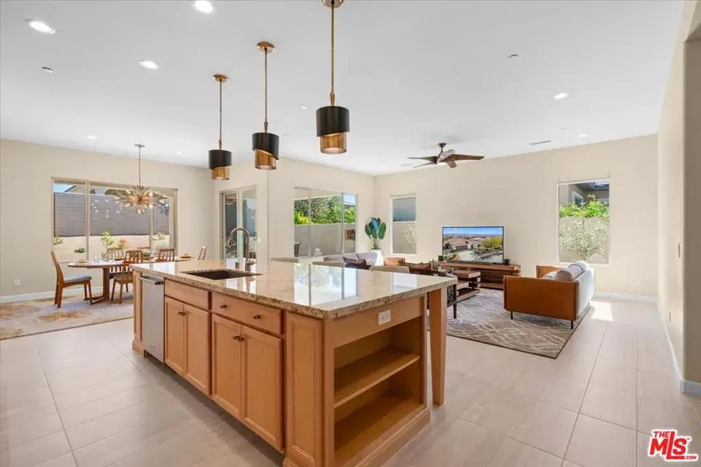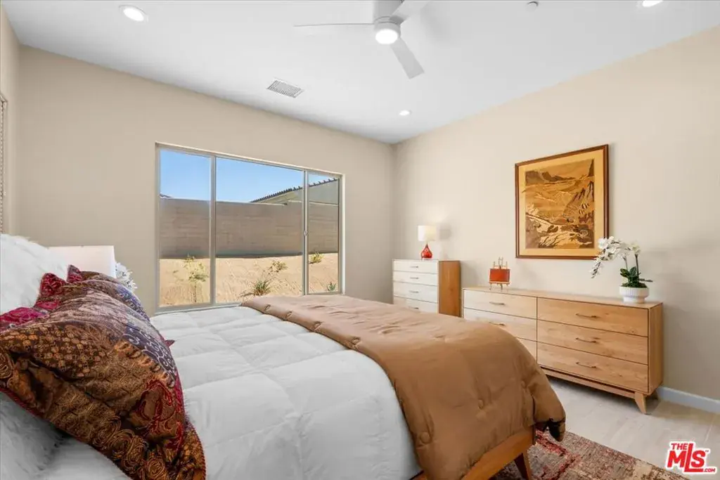 93 Cabernet is located in Del Webb Rancho Mirage, a 55+ gated community. It is an immaculate, warm, inviting PRESERVE model, Elevation A, 2008 sq ft. Upgraded with a 42″ entry door, ceramic tile flooring in every room, custom double barn doors, floor outlets, an Executive kitchen island, and ceiling fans. “Kitchen Aid” high-end, stainless steel appliances. Tasteful granite/quartz countertops, along with gorgeous backsplashes, are featured in the kitchen, oversized laundry room, and two bathrooms. The primary room has a barn door to privatize the primary bath, a glass walk-in shower, and a large walk-in closet. You will see matching custom hardware throughout the house in all rooms and cabinets. The sellers did not miss a beat when building this amazing home. The colors throughout are specifically designed to complement the property’s unique character. The second bath has also been upgraded to the best that Pulte offered. This home is located in Phase 1, in a tranquil corner of the community. Close to walking paths and the clubhouse, which is surrounded by gorgeous landscaping. You do not want to miss seeing this home. OWNED SOLAR. Upgraded garage door, glass windows, and a 2.5-car garage. Easy to view. When you are not in your beautiful home, this community is known for its active lifestyle. There are more than 30 activity groups and five golf groups. There is pickleball, tennis, bocce ball, two swimming pools, and a state-of-the-art fitness center with the most spectacular views of the mountains. The social committee plans many community events at the clubhouse, including concerts, plays, trivia nights, and more. The ballroom is perfect for more formal events like weddings. You can do anything you want in this community.