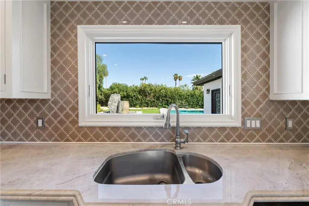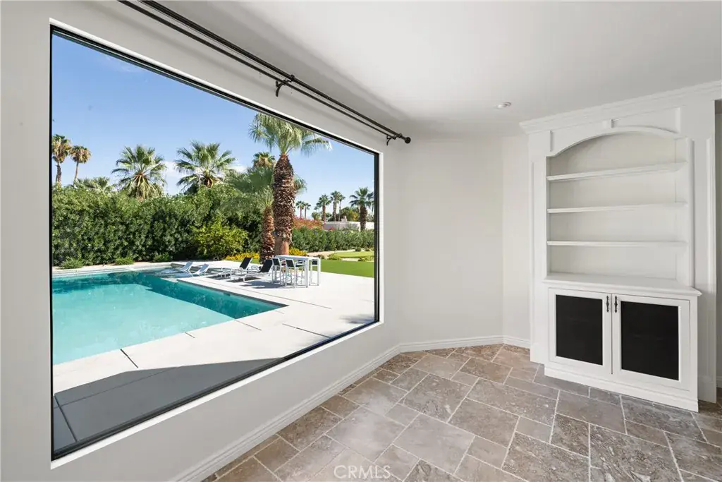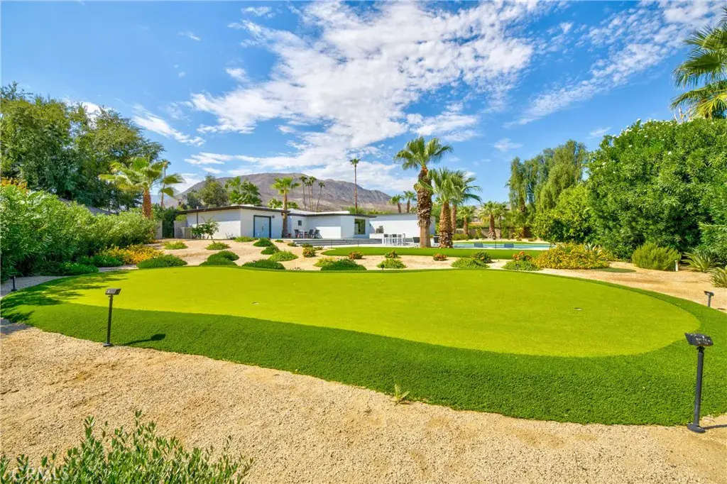 Courtesy of Livel Real Estate. Disclaimer: All data relating to real estate for sale on this page comes from the Broker Reciprocity (BR) of the California Regional Multiple Listing Service. Detailed information about real estate listings held by brokerage firms other than James Outland include the name of the listing broker. Neither the listing company nor James Outland shall be responsible for any typographical errors, misinformation, misprints and shall be held totally harmless. The Broker providing this data believes it to be correct, but advises interested parties to confirm any item before relying on it in a purchase decision. Copyright 2026. California Regional Multiple Listing Service. All rights reserved. The property boasts a serene courtyard with a stunning, custom-designed rock sculpture fountain by Roger Hopkins, adding a touch of modern art to the desert oasis. The centerpiece of the outdoor space is a 50-foot pool with a spa, surrounded by breathtaking mountain views from both the front and backyards. The pool features a variety of colorful lighting options, allowing you to set the perfect mood, while the landscape lighting creates a beautiful backdrop throughout the property. At the head of the pool, a striking fire feature adds a touch of elegance and warmth to the ambiance. Gather around the built-in fire pit for cozy evenings, perfect for roasting s’mores under the desert sky. A putting green with chipping areas is perfect for golf enthusiasts, while the spacious layout offers privacy and ample room for entertaining.