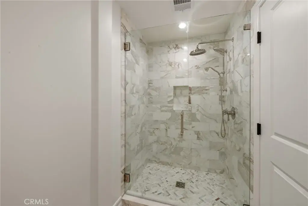 Inside, you’ll find a full chef’s kitchen featuring a huge island that doubles as an additional eating area and a perfect space to gather and entertain. If you need to catch up on work, there’s a cozy office space available to help you stay productive. Luxurious amenities like a walk-in shower and standalone modern tub create a spa-like experience. The home exudes a clean, comfortable vibe with a modern touch, especially in the backyard, making it the perfect retreat for relaxation and gathering with friends or family.