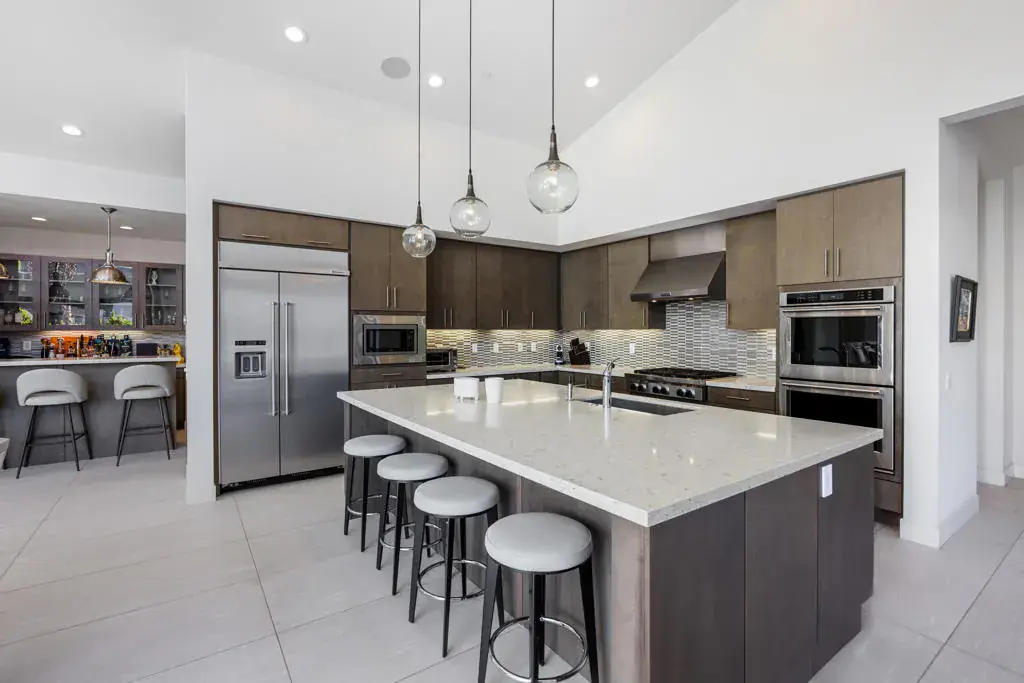 Experience exceptional craftsmanship and modern desert luxury in this custom-built residence, set within the exclusive gated community of Estilo in Rancho Mirage. Designed with remarkable attention to detail, this home offers sophistication, comfort, and effortless indoor-outdoor living. A stunning two-room casita with a private entrance and terrace provides ideal guest accommodations or a private workspace. Inside, soaring 16-foot vaulted ceilings and an expansive open-concept layout create an impressive setting for everyday living and entertaining. Floor-to-ceiling glass pocket doors disappear to reveal a private resort-style backyard with multiple lounging and dining areas, a built-in BBQ and bar, integrated speakers, and plenty of space to host. Enjoy a sparkling 40-foot saltwater pool and spa surrounded by beautifully landscaped gardens with an automatic irrigation system. The 1,200 sq ft primary suite is a true retreat, offering dual custom walk-in closets and a spa-inspired bath with quartz countertops, a spacious tiled shower, and a luxurious oversized soaking tub. Enhanced with comprehensive smart-home features–including multi-zone Nest climate control, smart lighting, audio, and TV–this residence blends comfort and convenience seamlessly. A rare offering where everyday living feels like a year-round vacation. Centrally located with easy access to entertainment, shopping, and dining.