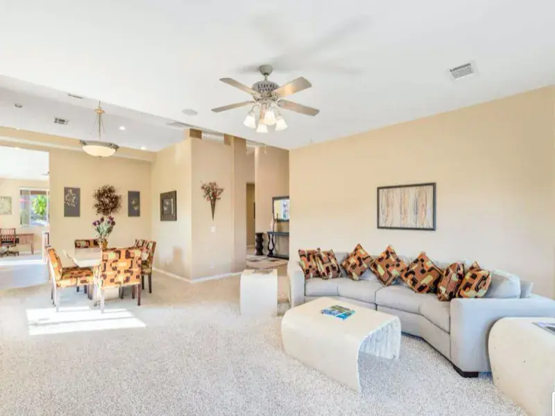 Seasonal Rental – Single-Level Home In Rancho Mirage. Enjoy the very best of resort-style living in this lovely single-family, one-level home featuring a private yard and sparkling private pool. Thoughtfully designed with an exceptional floor plan, the home offers excellent separation between bedrooms for maximum privacy.Situated on a large, south-facing corner lot, the property boasts beautiful west-facing mountain views. Inside, you’ll find 3 spacious bedrooms, 2.5 bathrooms, a welcoming living and dining area, and a gourmet kitchen with a cozy eating space–perfect for both everyday living and entertaining.An exceptional seasonal rental offering comfort, style, and privacy in a premier setting.