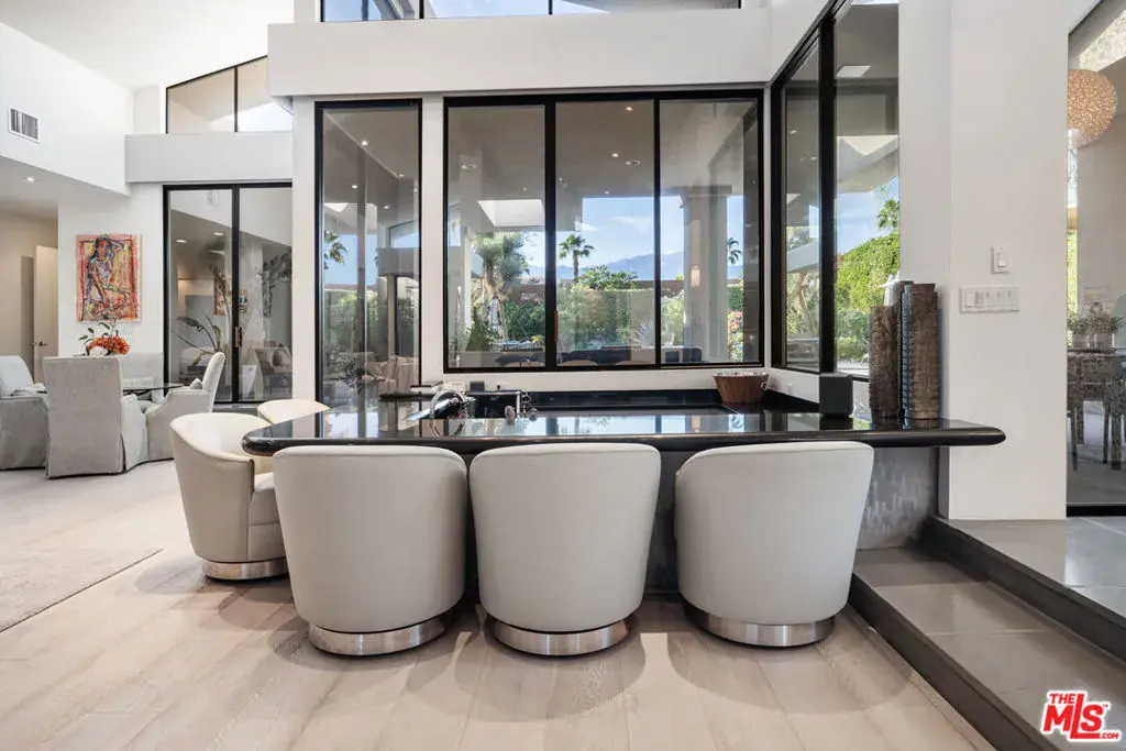 CONTEMPORARY MASTERPIECE, WEST MOUNTAIN VIEWS, SEPARATE GUEST SUITES, MASTER SUITE, LARGE PATIO AND POOL & SPA, VERY HIGH CEILINGS. Very Private Home in the Heart of Rancho Mirage… Beautiful and gracious Property behind the gates of La Residence. A contemporary Masterpiece…Great Room with Very High Ceilings… All important Rooms face West looking over large Patio and Pool; with West Mountain Views! A Master Suite with Separate Bathrooms and Closets…Also an Office…Separate Guest Suites throughout the home…Kitchen with eat-in area.. Brand new outdoor kitchen, stove top, barbecue and refrigerator. Gorgeous rose garden, mature orange, grapefruit, tangerine and fig trees. First time on the market for rental in one of the most exclusive and beautiful neighborhoods in Rancho Mirage. High Season negotiable.