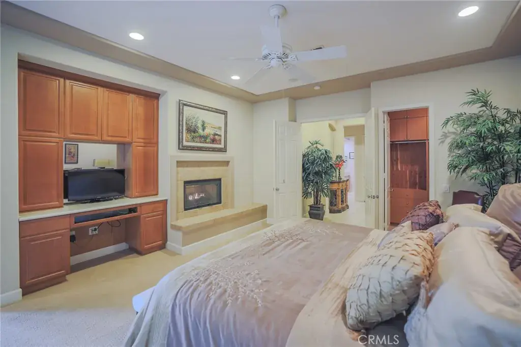 This home is perfect for entertaining, has two fireplaces, great room with a wet bar, and a formal dining / family room and inhouse surround sound. The kitchen has beautiful cabinets, marble counters, a butler pantry and plenty of cabinet space. The master suite feels like you are in a five-star spa with oversize shower, and soaking tub. There is a two-car attached garage plus 2 additional ovens and a full size refrigerator also in the garage along with a Sub-Zero Freezer in the laundry room, also included is a Jen-Aire BBQ grill on the patio.