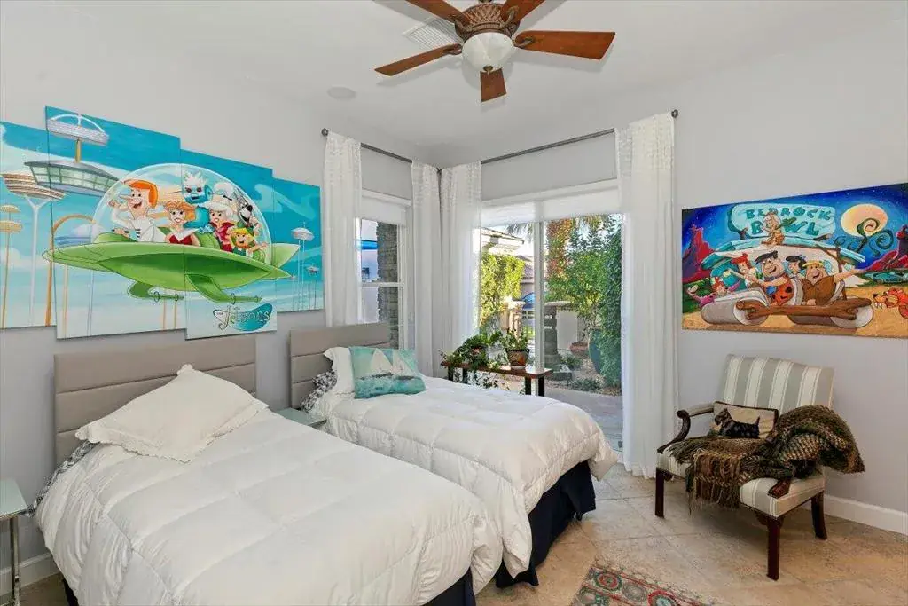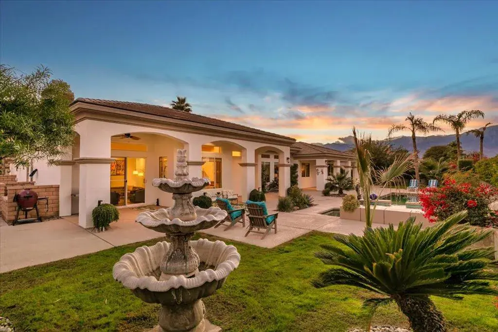 Welcome to La Toscana — where luxury, privacy, and timeless desert architecture unite in one of Rancho Mirage’s most exclusive gated enclaves. Desert luxury dialed to a 10 in La Toscana. Recently refreshed with NEW exterior paint, this beautifully upgraded home offers soaring 12-foot ceilings, abundant natural light, and a seamless indoor-outdoor layout ideal for entertaining. The open-concept layout is centered around an elegant granite fireplace and a sophisticated wet bar — perfect for effortless entertaining or relaxed everyday living. The chef’s kitchen is a true showpiece, featuring premium stainless steel appliances, gleaming granite countertops, a generous prep island, and a sunlit breakfast nook with views of the backyard oasis. The luxurious primary suite is a private retreat, offering three closets, a spa-inspired bath, and a secluded outdoor shower for the ultimate resort experience. Step outside to your personal desert sanctuary — a saltwater pool surrounded by cool decking with cascading waterfalls, an elevated spa, tranquil wading area, and a spacious covered patio surrounded by lush, mature landscaping that ensures total privacy. Attached casita, rare 4-car garage with NEW garage doors, lush, private landscaping, and a low HOA Nestled within an intimate community of just 44 residence this exceptional home in one of the desert’s most desirable gated communities