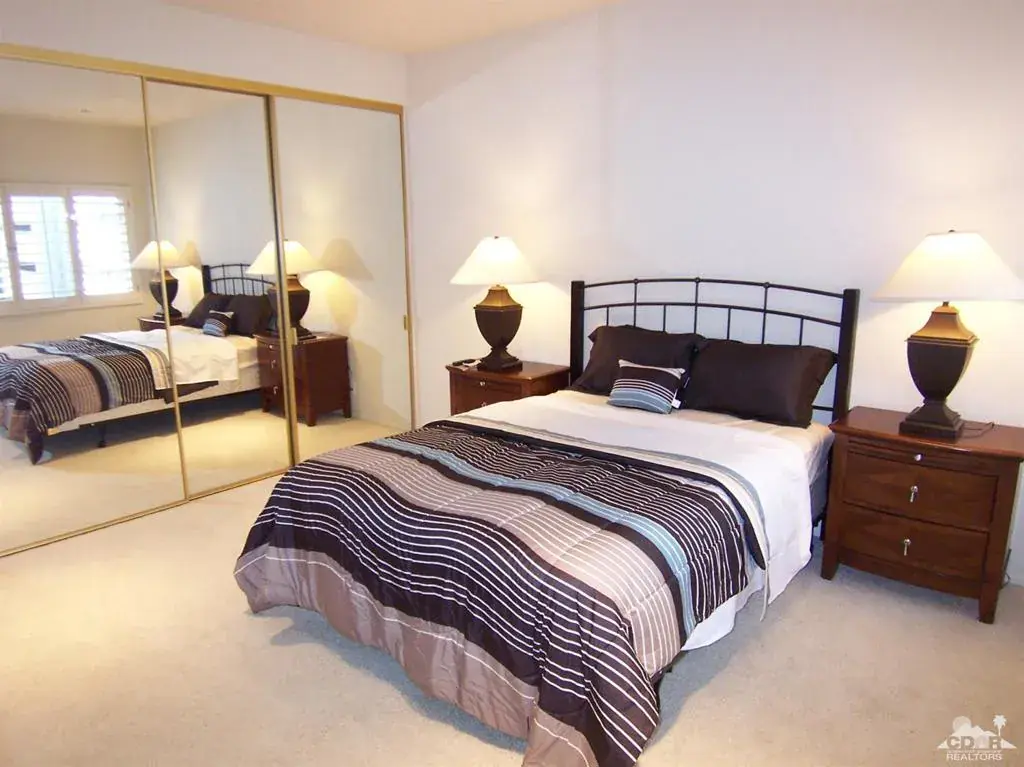 For Seasonal Rent in Rancho Mirage. Lake Mirage Racquet Club Turnkey Furnished Condo. .Available Fall 2024 . Lakefront Condo .Featuring Large home featuring high ceilings, Great room , 2 Bedrooms plus Den .The Kitchen upgraded with custom cabinetry , quartz counter tops. Built in bar with wine cooler, a built in sofa table/library with beautiful built in accents. A large covered patio overlooking the lake and large enough for entertaining. Walking Distance to the Clubhouse, Tennis Courts, Pickle Ball Courts and Pool, Exercise Room , Billiards and monthly parties. Lake Mirage Racquet Club has 11 Community Pools, 10 Tennis Courts and 2 Pickle Ball Courts.y. 2 Car garage. Leased from December 2025 through April 2026.