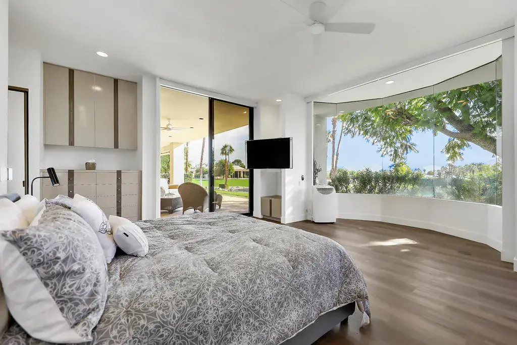 (*Booked NOV 2025- APRIL 2026*) One level 4 bedroom, 4 bathroom located in the highly desirable Tamarisk area in Rancho Mirage, California. This is like having your own private pool & spa on a mini estate because there are only 7 homes in this luxury home enclave. 2 beautiful blue tennis courts. Great room has soaring 16ft ceilings and a wall of glass which boasts breathtaking panoramic views. This celebrity chef’s kitchen offers professional 36′ cooktop with Italian burners and two 36′ French door refrigerators. The spacious main bedroom suite has large walk-in closet plus wardrobe closet. Bedrooms are ensuite. You will have privacy in a convenient location in the heart of Rancho Mirage between the highly sought after Tamarisk area and popular Mission Hills Country Club – yes – drive your golf cart across the street to Mission Hills Country Club if you wish. Also minutes from other destination desert valley attractions and highly rated Eisenhower medical facilities. You will have exceptional panoramic southern mountain views from the time you enter the front courtyard and also from interior living areas and from the relaxing back patio. 2-car garage attached garage with direct access. Solar panels. Smart TV’s. Wireless Internet, and utilities up to $300-mo. (*Booked Nov 2024- April 2025*)