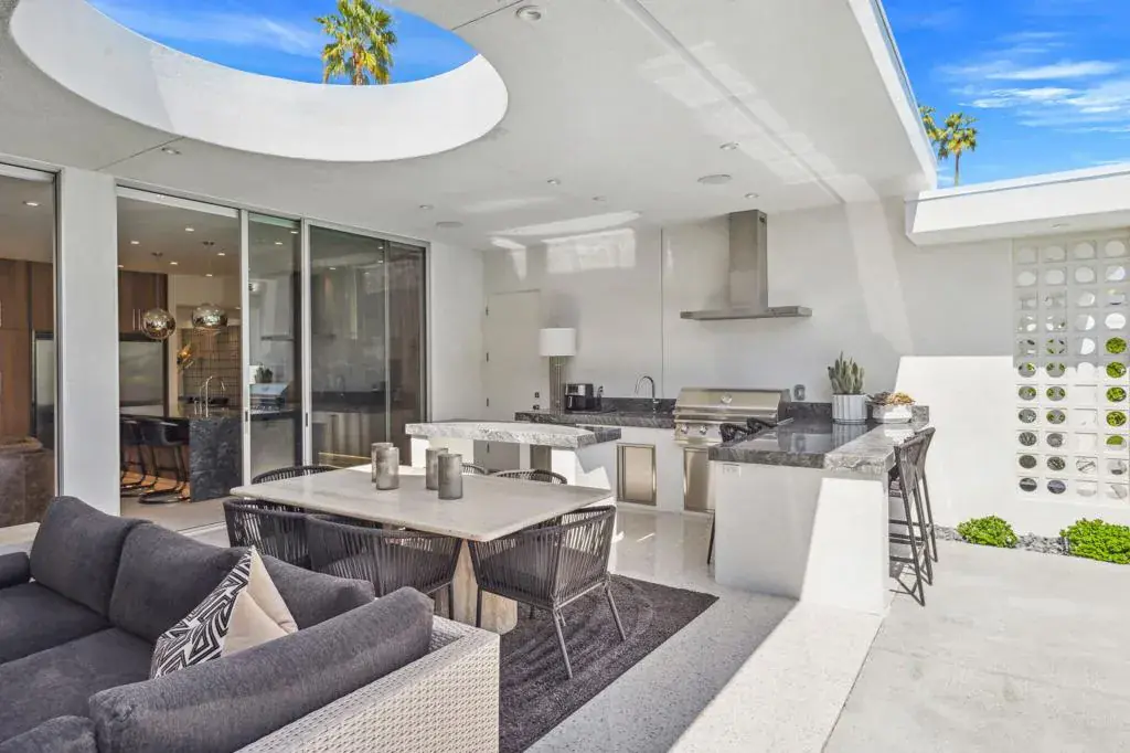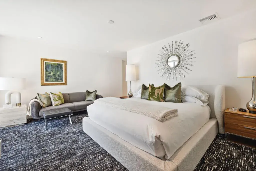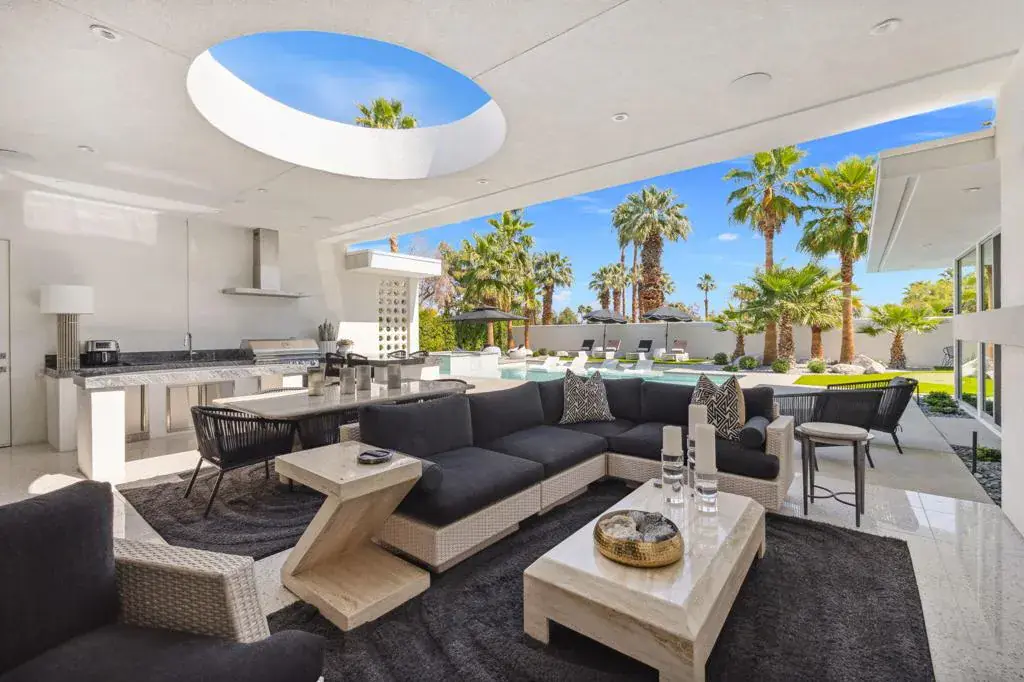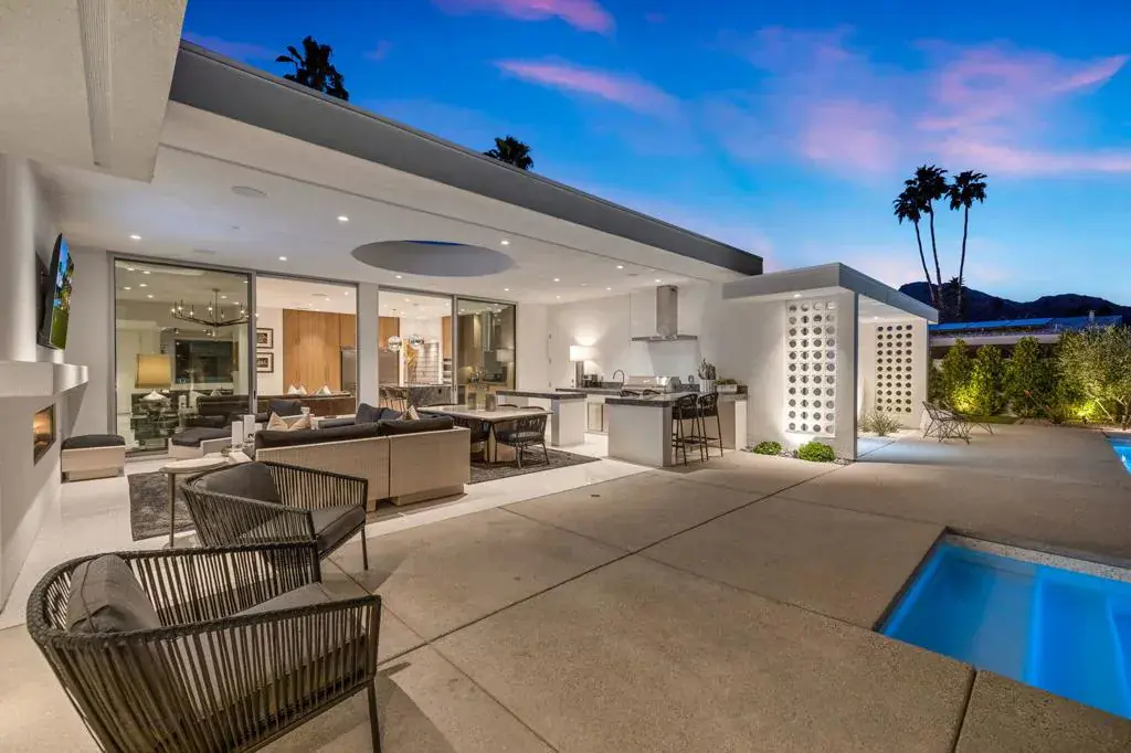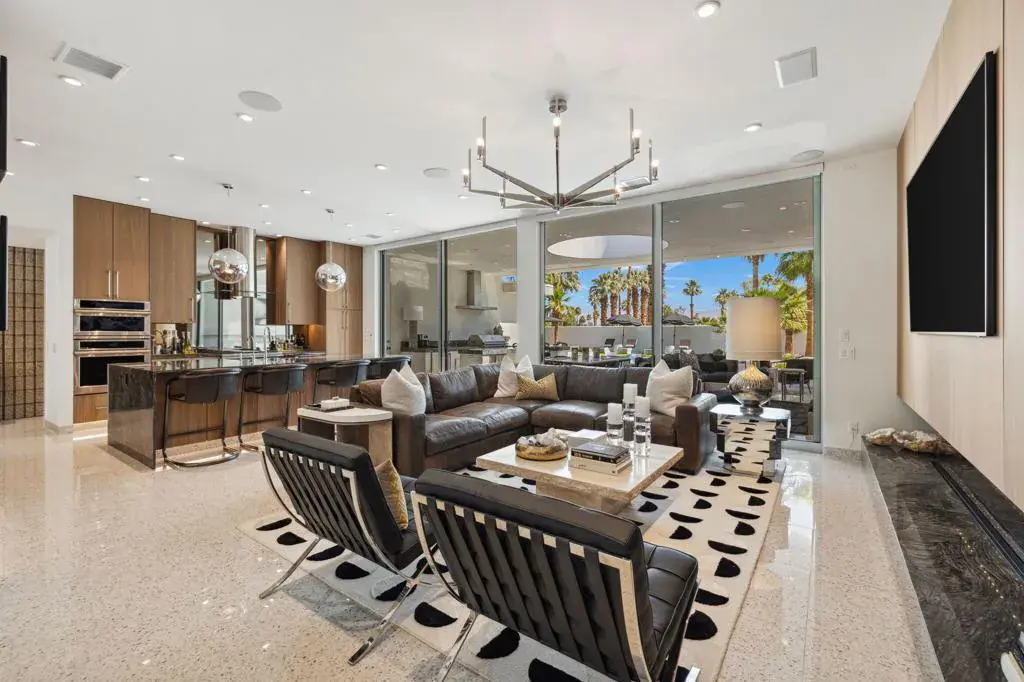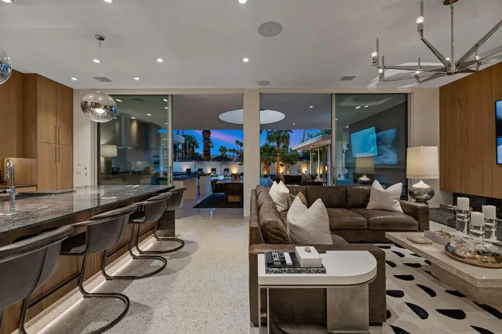 Prime location is only the opening act. This entirely custom rebuild, completed in 2024, sits within walking distance of the world-famous Sensei Porcupine Creek, delivering a level of proximity and prestige that few homes in the valley can match. From the moment you arrive, the home signals something different–purpose-built, artist-driven, and singular in its presence. Inside, mid-century glamour meets modern allure. Designed by a visionary home-artist protege, the aesthetic channels the charisma of 1960s-70s Hollywood–then reinterprets it with a seductive, contemporary edge. The result is cinematic without feeling staged–stylish, refined, sensual, and remarkably livable. Spanning 3,644 square feet on a 13,500 square foot lot framed by uninterrupted 360-degree mountain views, the home is set against the dramatic peaks of the San Gorgonio and San Jacinto Mountains. The coveted Magnesia Falls neighborhood is celebrated for architectural distinction, privacy, and a quiet sophistication that feels worlds away from ordinary luxury. Here, the setting doesn’t just support the home–it elevates it. Porcelain-terrazzo floors flow throughout like polished sculpture, while split-face block and brick walls create texture that shifts beautifully with the desert light. Custom walnut cabinetry brings warmth and craftsmanship, balancing artistic statement with timeless luxury. Four lavish en-suite bedrooms provide retreat-level privacy, joined by a sleek, inspiring office and whole-home AV and smart integrations that connect without ever intruding on design. Outdoors, the atmosphere turns to desert decadence–designer pool, steamy Jacuzzi, and a private putting green built for playful afternoons and lingering winter evenings under starlit skies. It’s a space designed for gathering, unwinding, and living in the moment. This is where Rancho Mirage luxury stops being predictable and starts being emotional. A home that isn’t just seen, but felt–cool, seductive, stylish, and unforgettable. Properties like this don’t come along. They only come around once. – Welcome to art you can live in. Legacy you can feel. Rancho Mirage at its most original.