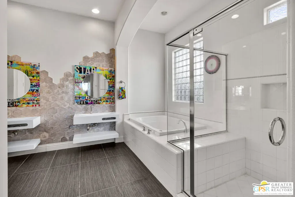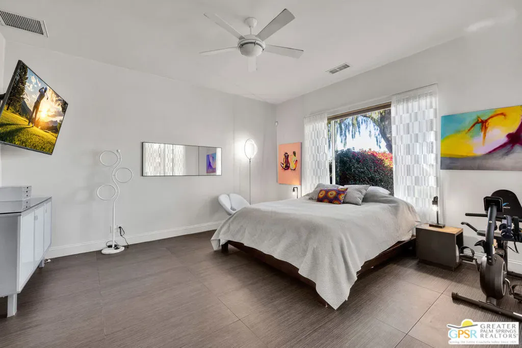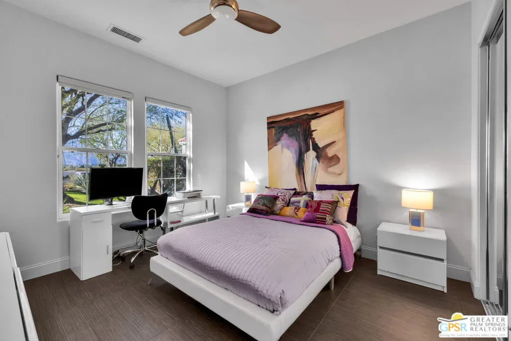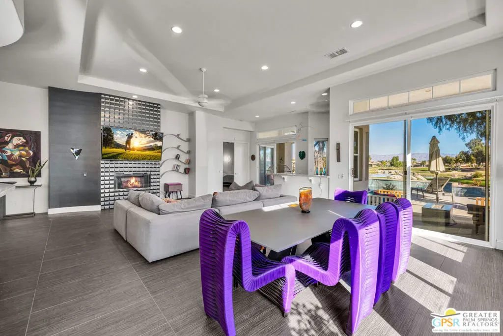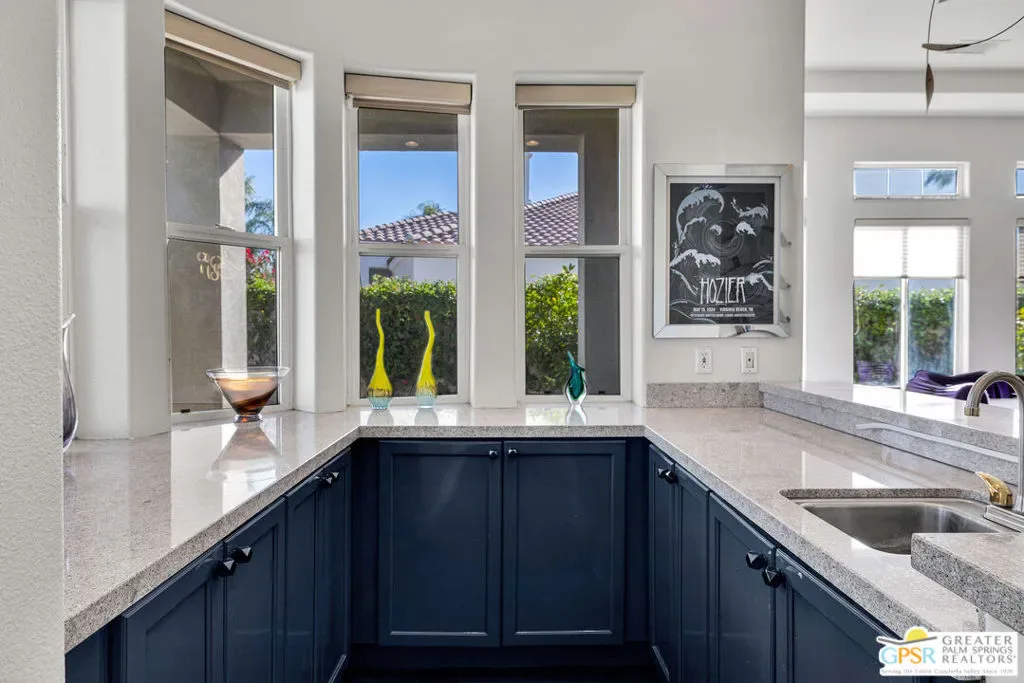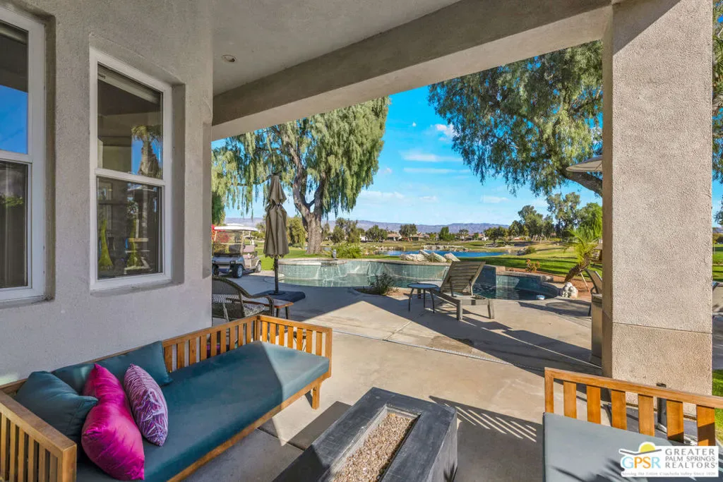 A true backyard oasis situated directly on the golf course, with expansive fairway and mountain views. Enjoy relaxed desert living with a private pool and spa, creating the perfect outdoor retreat. Inside, high ceilings enhance the open floor plan, offering a light and airy feel throughout. The dining area flows seamlessly into a chef’s kitchen featuring granite countertops, black stainless steel appliances, a center island, breakfast bar, dinning area, and ample cabinetry. Additional features include a water softener system, instant hot water throughout, newer dual-zone HVAC units, and a leased 48-panel solar system (Power Purchase Agreement) that produces power well beyond the current homeowner’s usage. The primary suite offers direct patio access and a spa-like bath with walk-in glass-enclosed shower, soaking tub, dual vanities, and two walk-in closets. Guest bedrooms are thoughtfully separated from the primary suite. This home is part of a beautifully maintained, guard-gated community with additional roving security and low HOA dues. HOA benefits include cable TV, lighted tennis and pickleball courts, a community pool/spa, and concierge trash service. Whether full-time or seasonal, this home offers the best of desert living in the heart of Rancho Mirage.