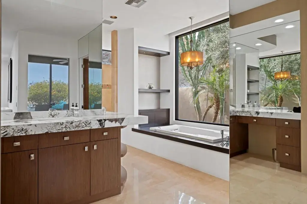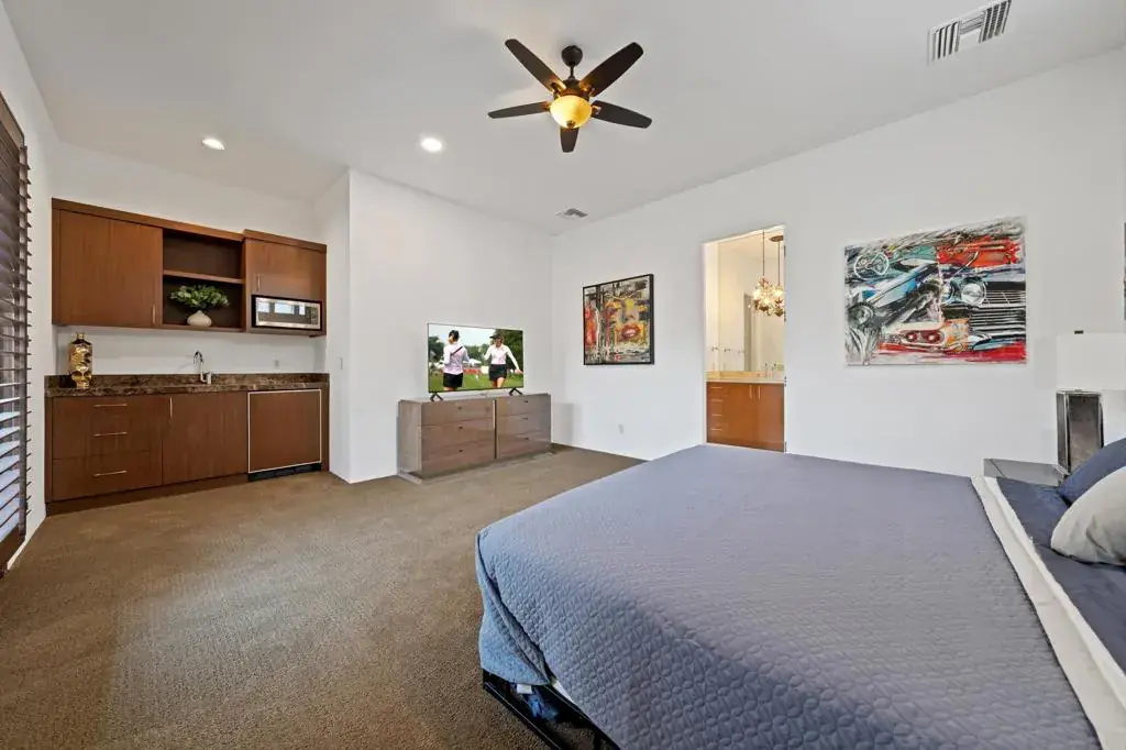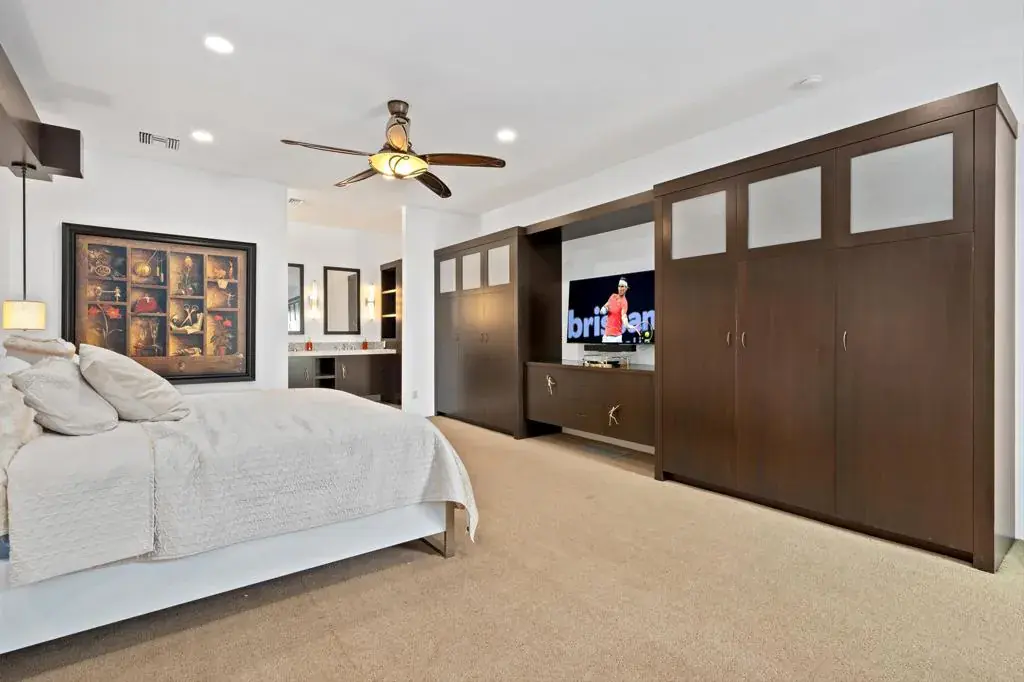 SELLER IS MOVING TO PALM SPRINGS AND WILL CONSIDER TRADE OR SELLER FINANCING. FURNISHED PER INVENTORY & MOVE IN READY! For open house info & access call listing agent. A Narendra Patel masterpiece at Mirada Estates is arguably the most prestigious custom development in the entire valley. Perched at the top, this custom estate has one of the best lots & location w/ no neighbors on three sides of the house. This is a truly spectacular world-class house for the most sophisticated buyer. One touch, whole home Lutron lighting and Sonos sound system with phone apps! Beautiful courtyard entry w/ a custom rock waterfall. ”Wow” factor 360 big mountain & sweeping valley views captivate the soul. Enjoy amazing breathtaking city lights visible from nearly every room in the home! The home is single level, 4 bedroom ensuites, 4 and a half baths, a large detached casita with kitchenette, office or gym w/ great views & sits on .68 Acres. Gourmet kitchen w/ center Island, top of the line appliances, 100 bottle wine refrigerator, warming/cooling drawers, complete w/ breakfast nook. The many features include 2 remote control fireplaces, remote control shades, paid for solar, central floor vacuum system, wet bar & formal dining area. Large entertaining back yard w/ custom pool & spa, w/ large tanning shelf, built in BBQ & multiple dining areas. House is designer furnished per inventory w/ every detail including Frette bedding. Ritz-Carlton residence membership included! Benefits are discounts on fitness center, spa & restaurant. This very special estate is a must see & is one of one