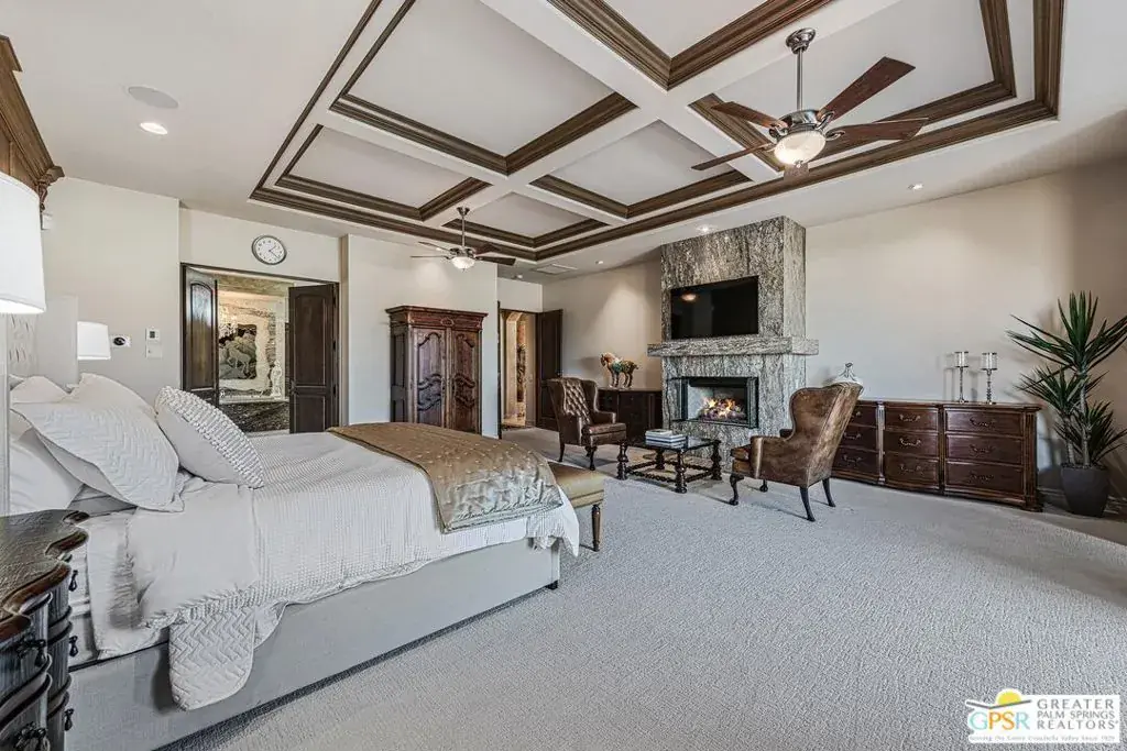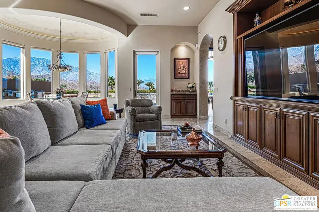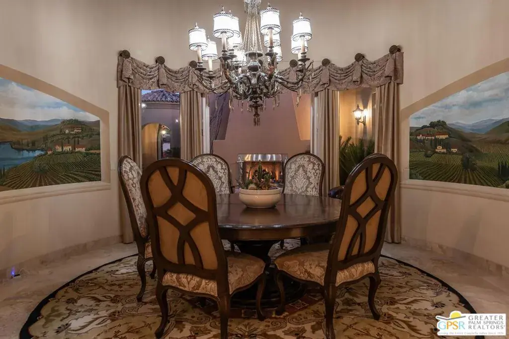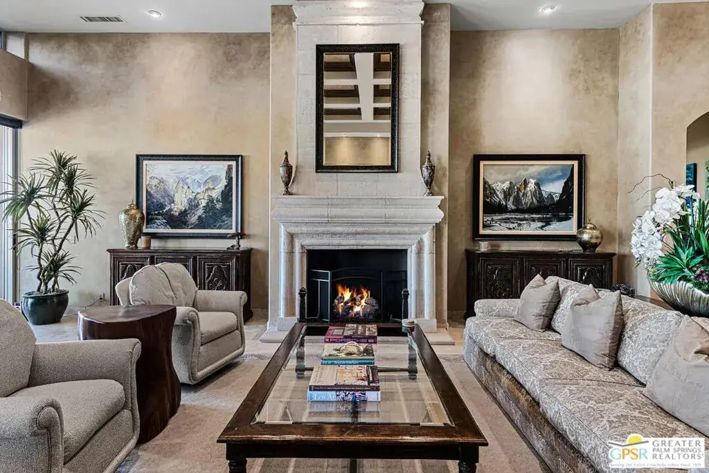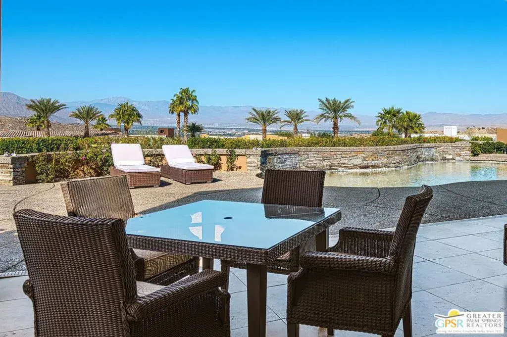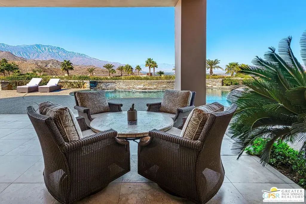 Tucked into the exclusive Mirada Estates, this private retreat blends elevated desert living with modern comfort. Set against the breathtaking backdrop of the Santa Rosa Mountains, this home offers unobstructed valley views that stretch for miles. With seamless indoor-outdoor flow, an entertainer’s backyard, and access to world-class amenities at the neighboring Ritz-Carlton Rancho Mirage, this is the kind of home that makes every day feel like a resort getaway. From the moment you arrive, the circular turret entry, inviting courtyard and grand double doors set the tone for an experience that is both welcoming and refined. Inside, soaring ceilings, expansive windows and an open-concept layout create a sense of lightness and space. The gourmet chef’s kitchen is equipped with top-tier appliances, custom cabinetry and a grand center island. The primary suite is a private sanctuary, featuring a spa-inspired en-suite bath, walk-in closet and direct access to the outdoor living areas. Additional guest suites offer comfort and privacy, ideal for hosting friends and family. The backyard is designed for both relaxation and entertaining, with a sparkling pool, spa, outdoor fireplace and multiple lounge areas where desert sunsets ignite the sky and city lights shimmer below. Residents of Mirada Estates enjoy exclusive privileges at the Ritz-Carlton Rancho Mirage, including fine dining, a world-class spa, fitness facilities and special rates for visiting guests. Located in the heart of Rancho Mirage, you’re just minutes from championship golf courses, luxury shopping and the vibrant cultural scene of Greater Palm Springs. Whether you’re seeking a serene desert retreat or a stunning space to host and entertain, this property delivers it all.