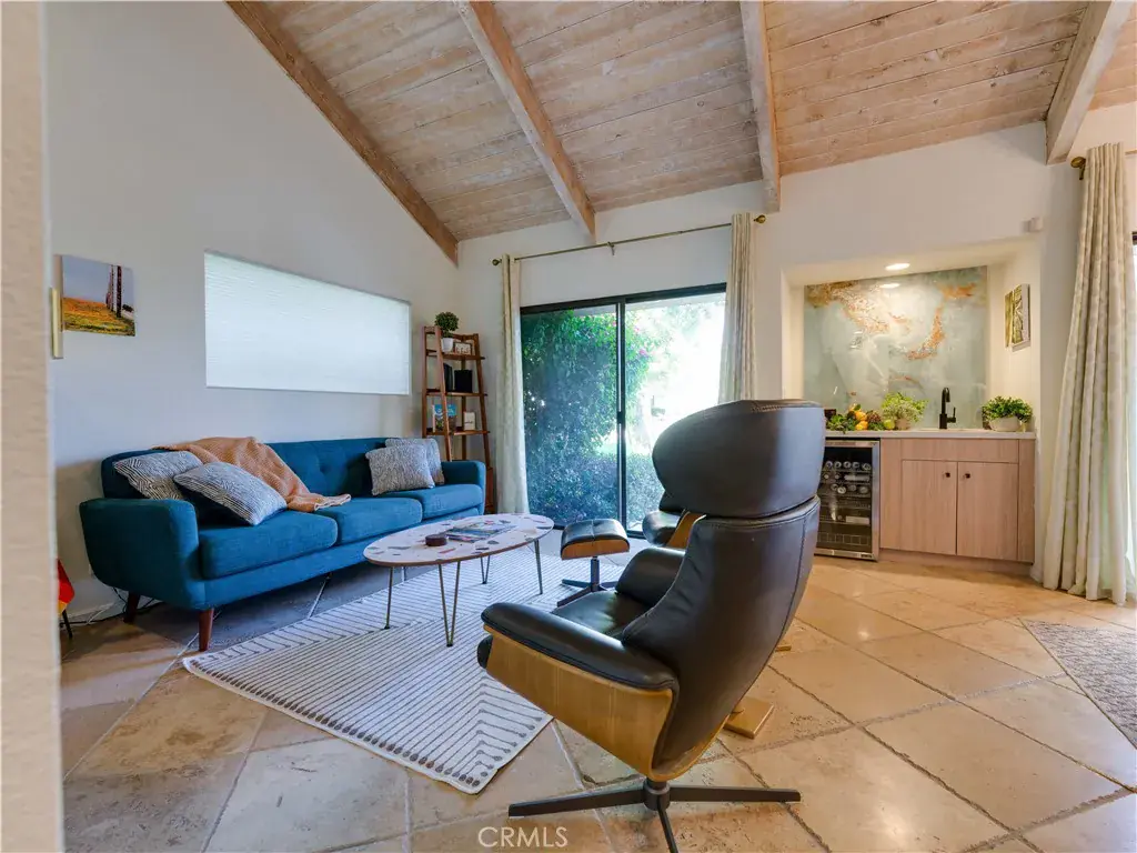 The updated kitchen boasts quartz countertops, stainless steel appliances, pantry, and a dedicated coffee station. Double sliders lead to the private rear patio—ideal for morning coffee or evening BBQs. Additional outdoor spaces include a gated courtyard and a rooftop terrace with stunning sunset and mountain views.
